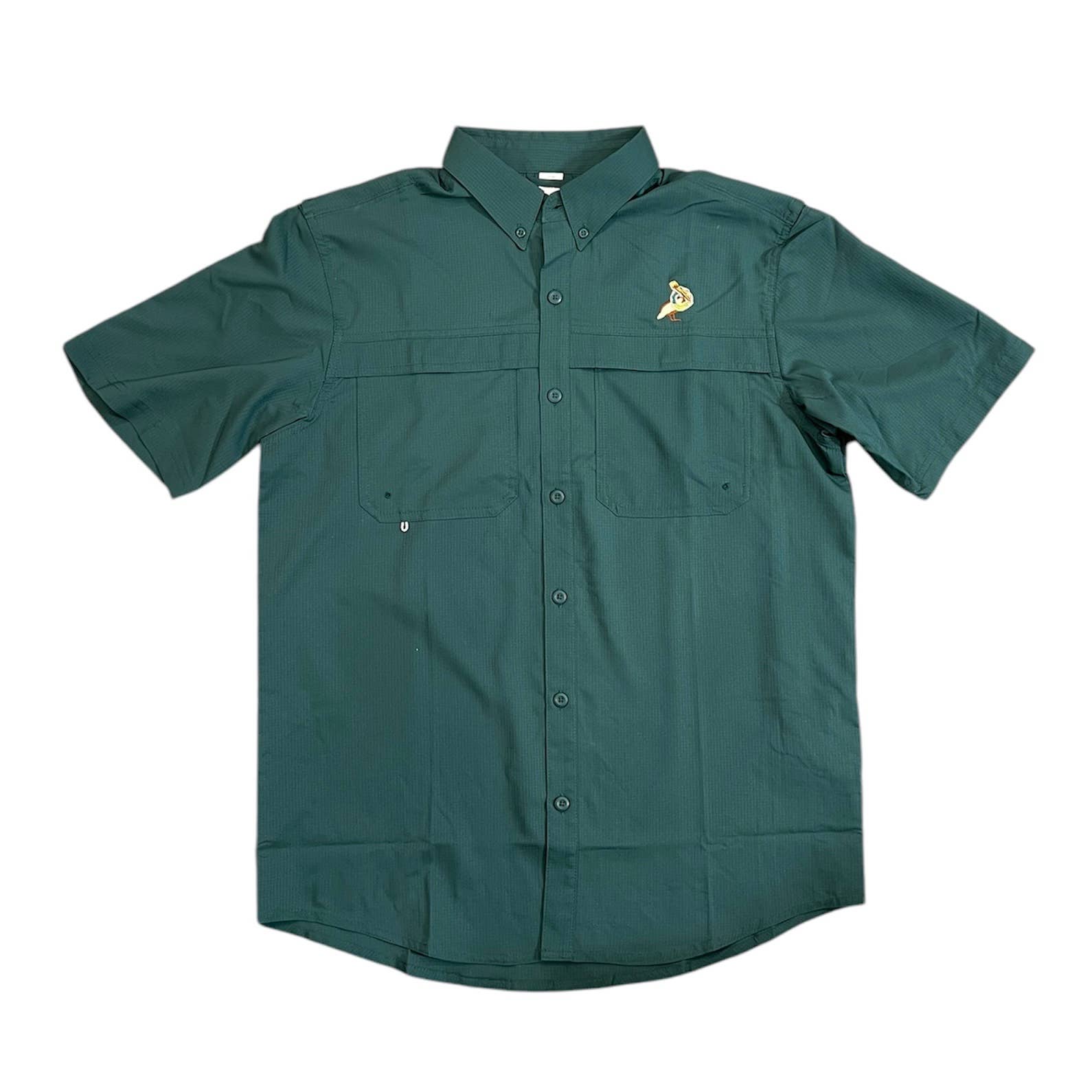 Time to get a drink and the Palm Springs Cocktail Button Up Shirt is the perfect thing to wear to the tiki bar! This single panel bowling shirt features an embroidery of a drink shaker, a martini glass and a tumbler on the left front of the shirt, right about the breast pocket. COLOR: Black body with apple green panel and stone piping MATERIAL: 100% Polyester Machine Washable Made in the USA