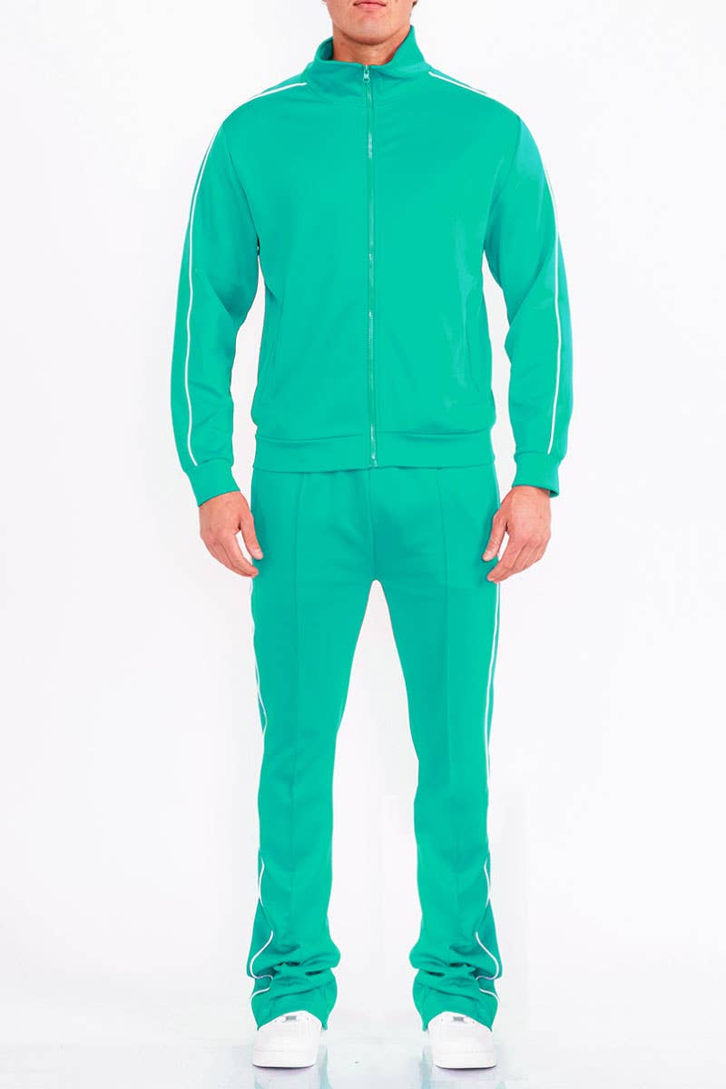 Step up your athleisure game with our Single Stripe Track Set for Men, designed for both performance and style. This versatile track set features a full-zip jacket and elastic waist track pants, making it perfect for workouts, casual outings, or lounging in comfort. The bold single stripe design adds a sporty edge, while the high-quality fabric ensures a great fit and durability. Key Features: * Fabric: Crafted from 95% polyester and 5% spandex, this track set offers the perfect combination of breathability, flexibility, and stretch for a comfortable fit during any activity. * Fit: Regular fit, true to size, providing a relaxed yet tailored look that moves with you.