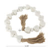 GLASS BEADED GARLAND FROSTY SKY BLUE 45"L Style the teal small beads with tassel around a glass bottle vase or draped across a tray or books to create visual interest. This item ships in 1 carton. Glass garland with tassel makes a great gift for any occasion. Due to the handmade nature of this item, no two will be alike, there will be slight differences in shape, size, and color. Suitable for indoor use only. This item ships fully assembled in one piece. Made in India. This is a single teal colored large beads with tassel. Bohemian style.
