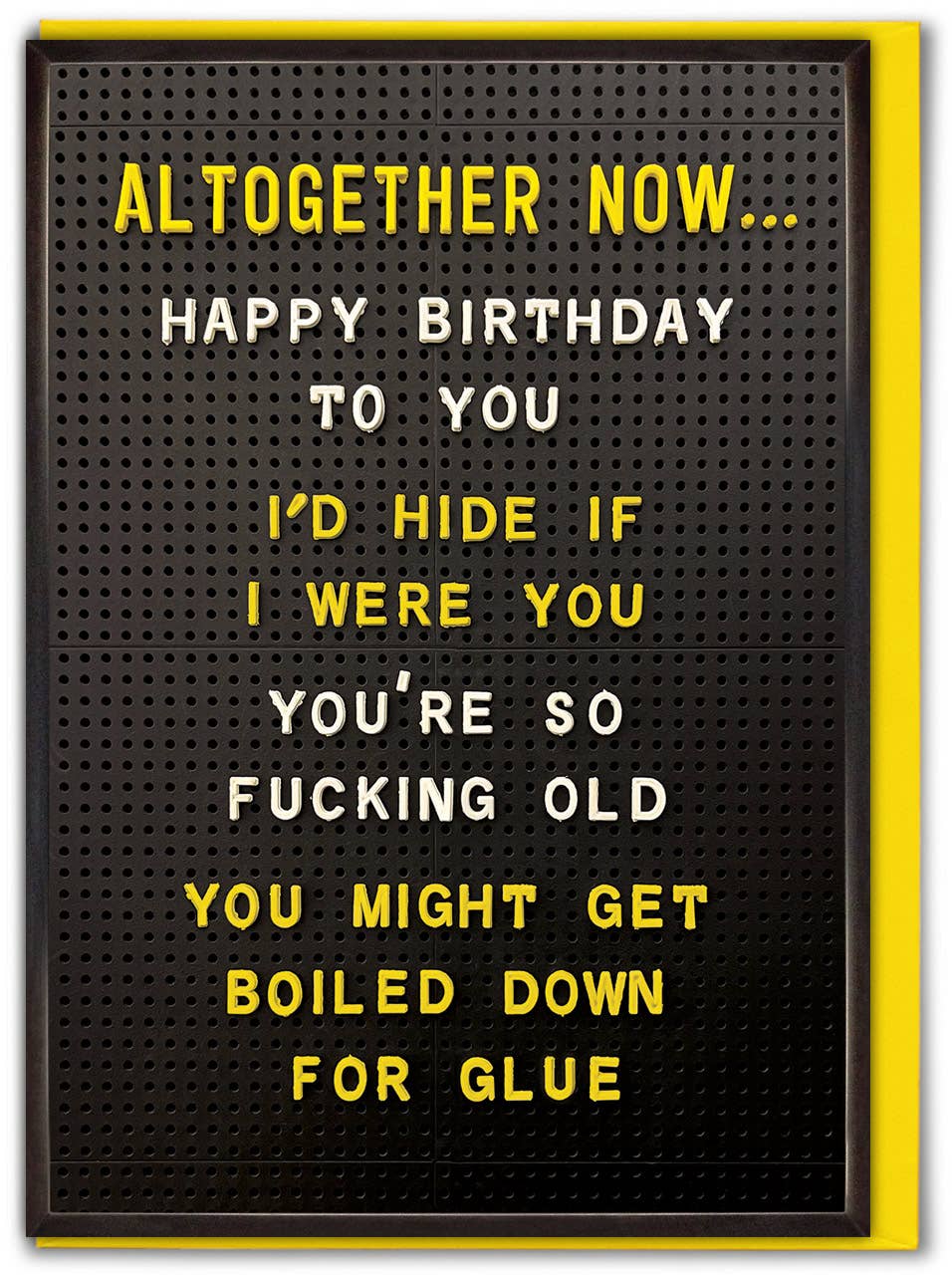 Prepare to spread some humour in style with our ‘Happy Days’ range of hilarious greeting cards. Created by Brainbox Candy, these humor cards feature vibrant, colourful designs with funny (and sometimes rude) captions. Printed in the UK on sustainable high quality FSC accredited card stock. This card is blank inside and comes cello wrapped with a high quality coloured envelope. Supplied in: Packs of 6 Dimensions: 120mm x 170mm Weight: 18g