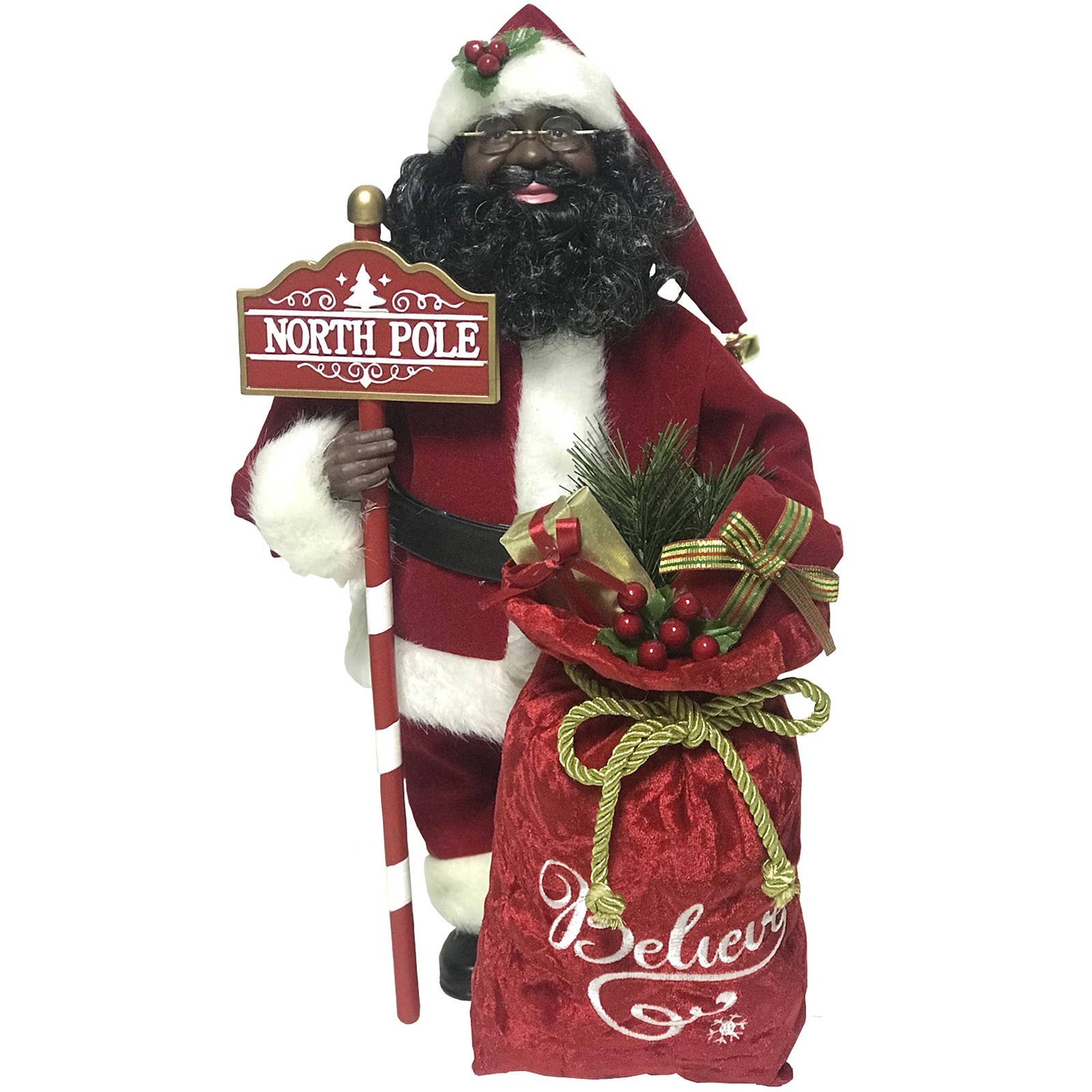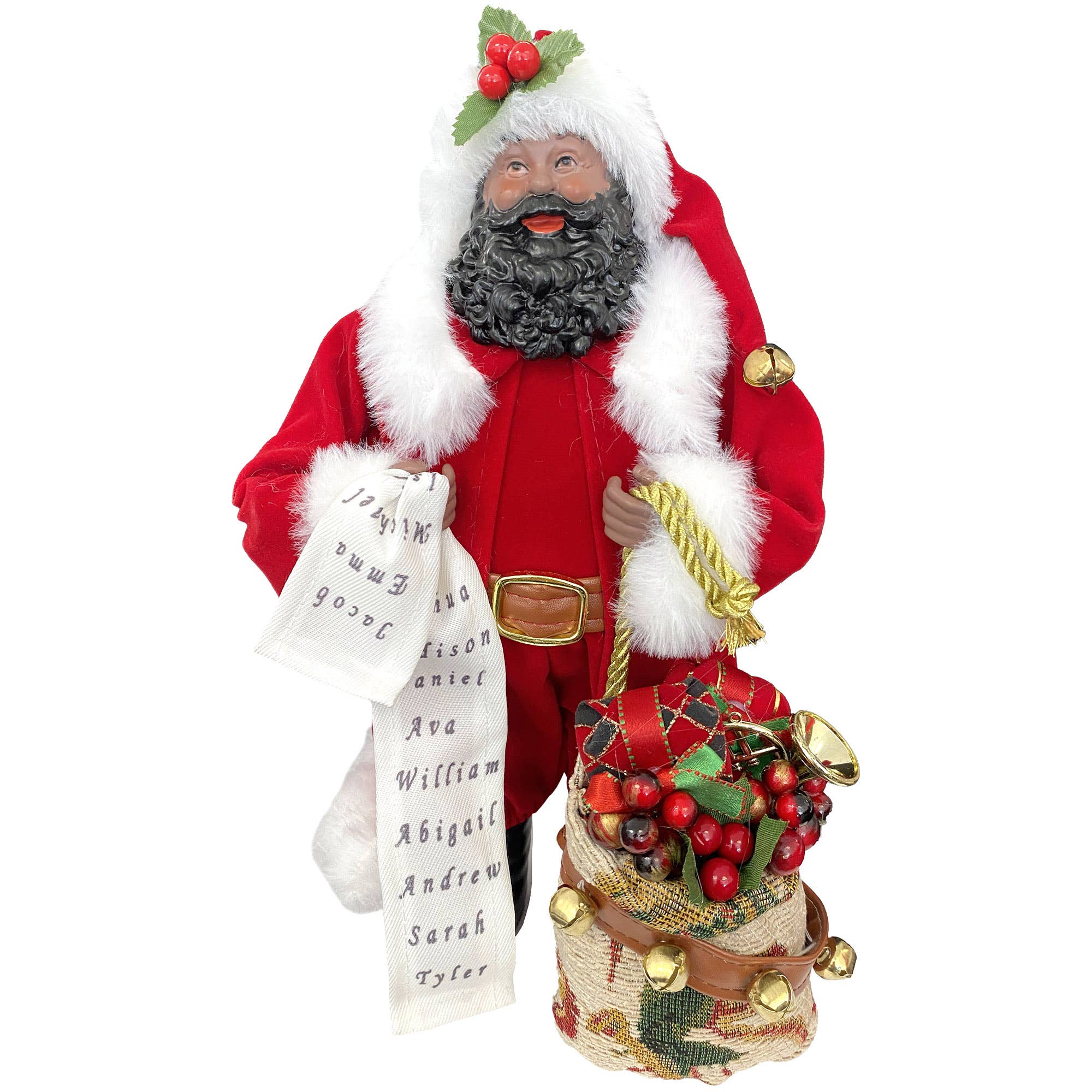 Santa always makes a dashing figure in his red suit with white trim and black boots, and this beautiful 14" Black Santa with Tree & List Nutcracker captures his look perfectly. Handcrafted from wood and hand painted, this decorative nutcracker will provide many years of pleasure.