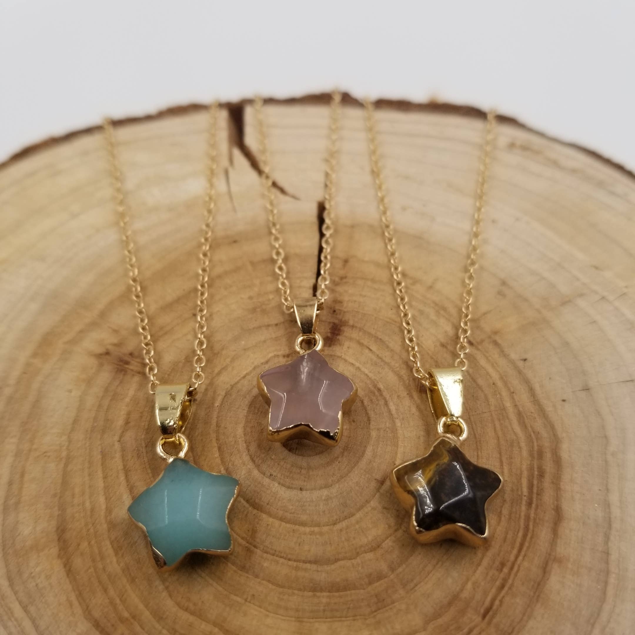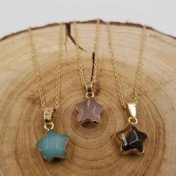 Strawberry Quartz Gold Star Necklace
