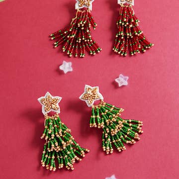 Get into the holiday spirit with our Christmas Candy Cane Seed Beaded Dangling Earrings. Made with festive red, green and white beads, these earrings are perfect for adding a touch of Christmas cheer to your outfit. Dangle style adds a fun and playful touch to your look.