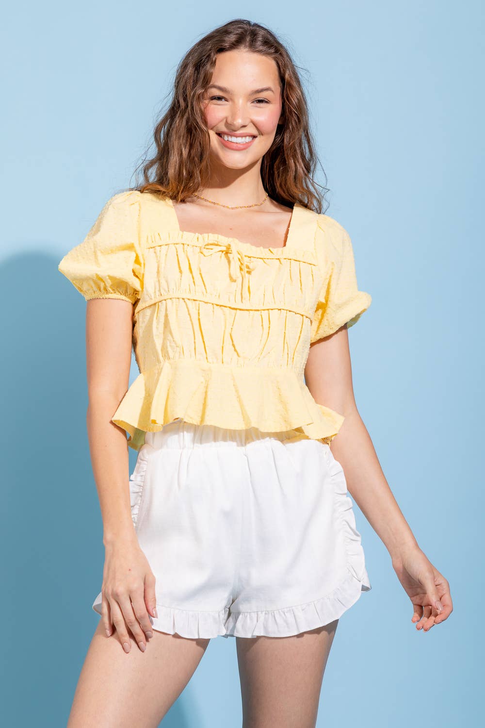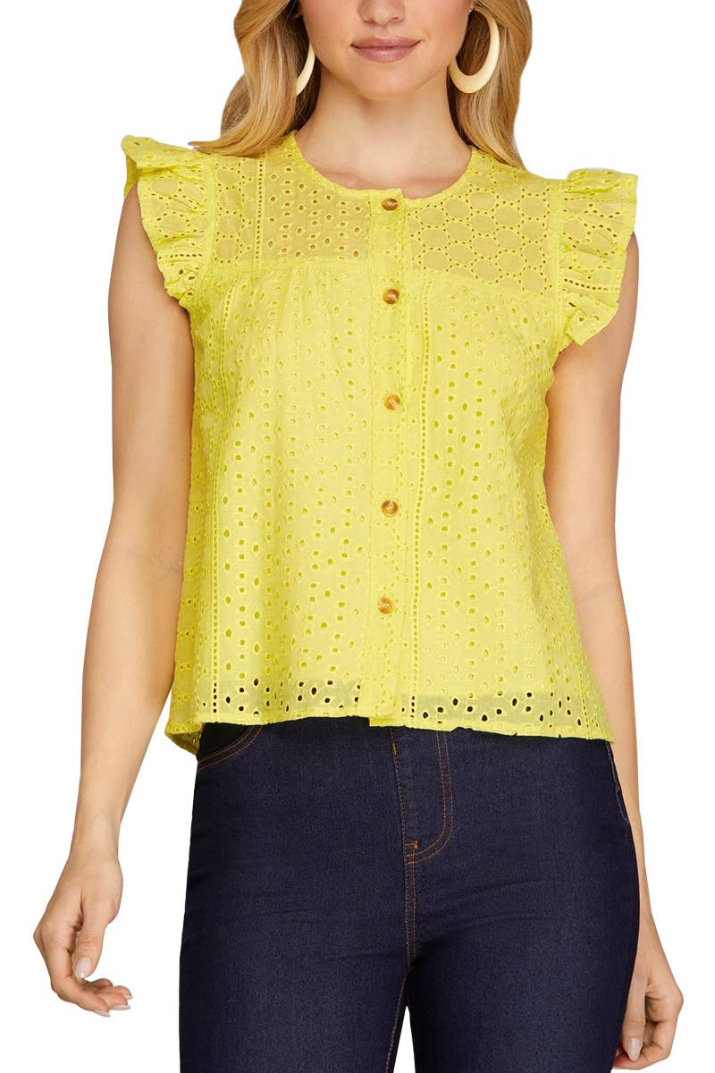 No reviews for Crew Neck Eyelet Lace Ruffled Sleeve 100%Cotton Top VT82646- yet.
