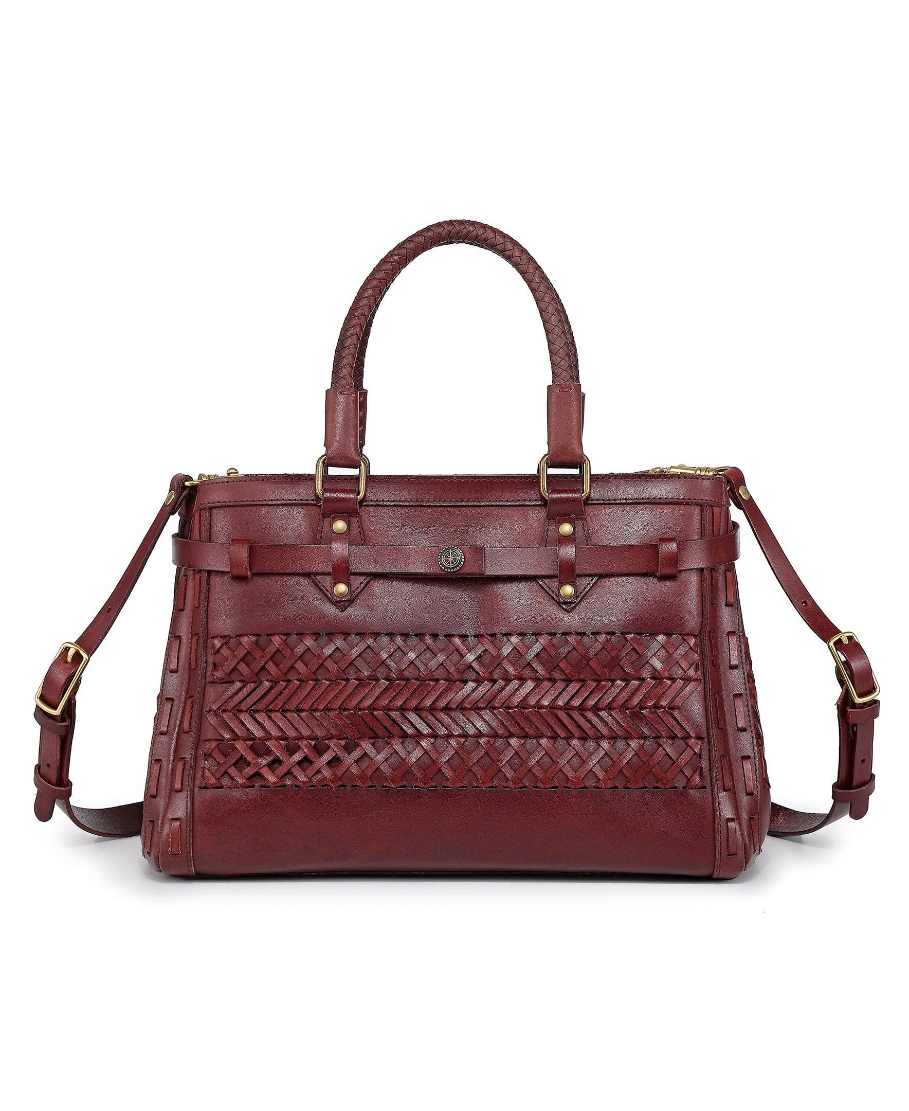 The Ember Satchel Bag is a chic and structured carryall for every day. Crafted from faux crocodile-embossed vegan leather with a color block finish, and designed with gold-tone embellishment, this satchel is a forever bag. Open the top zipper closure to reveal a fully lined well-organized interior with dedicated pockets for your phone, wallet, and other small items. The exterior features a small ring so you can attach your keyring. Carry the Ember Satchel Bag by the top handles or attach the adjustable crossbody strap for multiple carrying options. This style has a flat base and feet for stability. You will love this both practical and polished style. •Pockets: Interior features a wall zip pocket and two slip pockets. •Measurements: 11.8 W x 9.8 H x 6.3 D •Removable and Adjustable strap: Extends to 25. •Handle Drop: 4.75