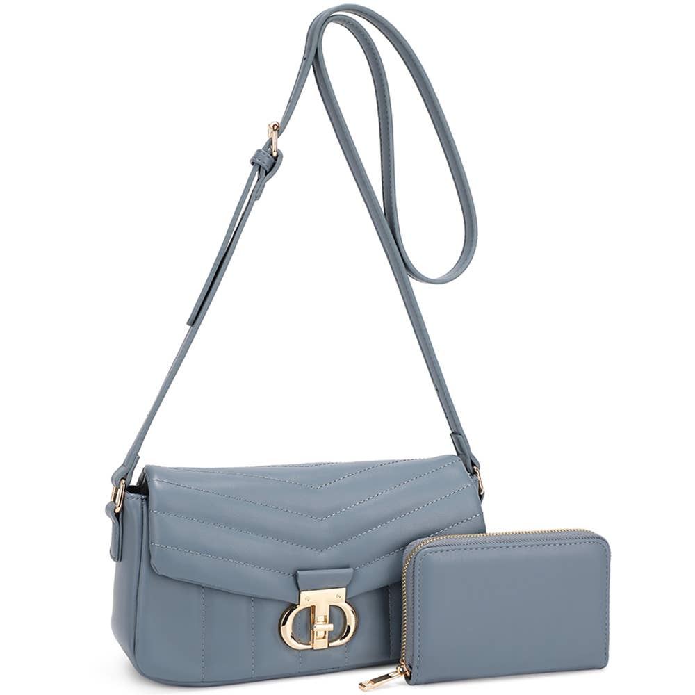 2IN1 OVAL DESIGN ZIPPER CROSSBODY W WALLET SET 8.2 X 3.5 X 6.4