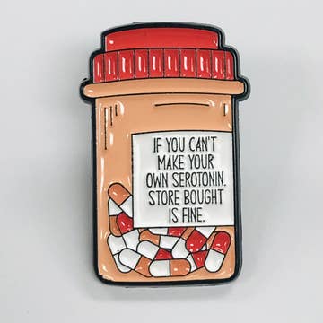Based on a true story. Maybe you can relate. Sometimes you do what you gotta do and that’s ok. In fact, let the world know “I was brave today and the drugs helped”. 1.25” hard enamel pin with rubber backing. Logo imprinted on the backside.