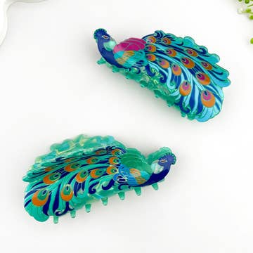 Peacock Acetate Hair Claw Clip, Animal Hair Clip