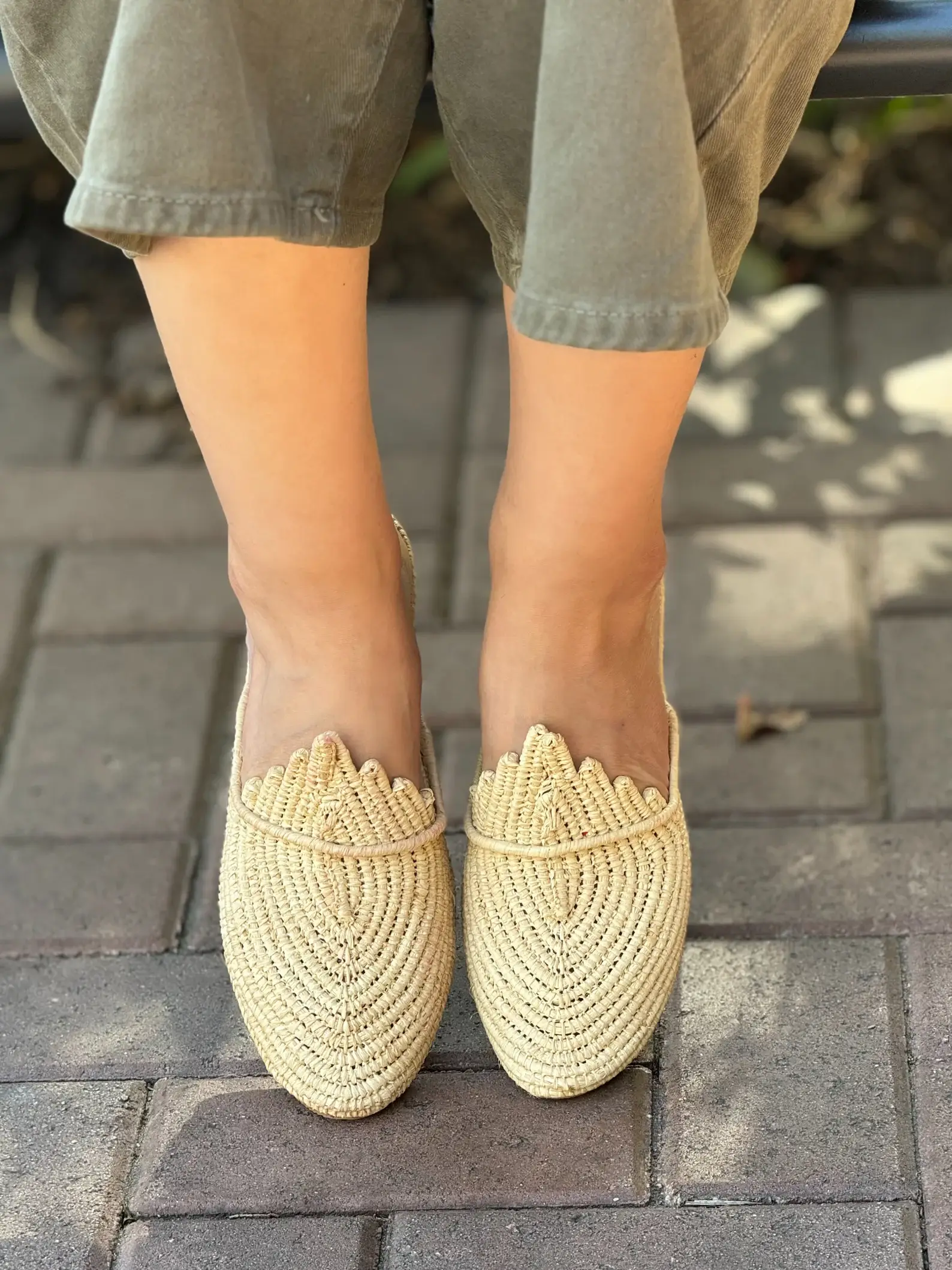 Introducing the allure of Morocco with our handcrafted Moroccan Raffia Shoes in elegant natural. These artisanal marvels are here to redefine your footwear collection, seamlessly replacing your sandals, espadrilles, and slippers. Versatile enough to complement both Western and Moroccan attire, these shoes offer an exceptional blend of comfort, lightweight ease, and timeless style. Sourced directly from Morocco, these sustainable wonders are born from a unique craft that weaves natural raffia into a footwear masterpiece. The soles are meticulously crafted from upcycled leather, repurposing luxury factory excess. Every pair of Moroccan Raffia Shoes is lovingly handcrafted by underserved Moroccan communities, offering them financial empowerment while championing eco-friendly production practices. Step into the world of sustainable style with these extraordinary Moroccan Raffia Shoes.