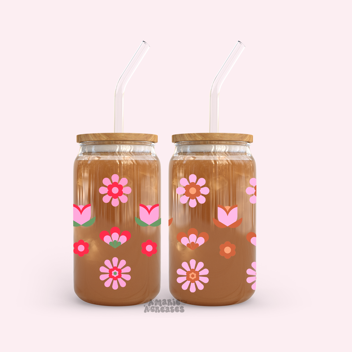 amarieacreates - Wholesale Drinking Glass/Cup - Strawberry Daisies Glass Cup0