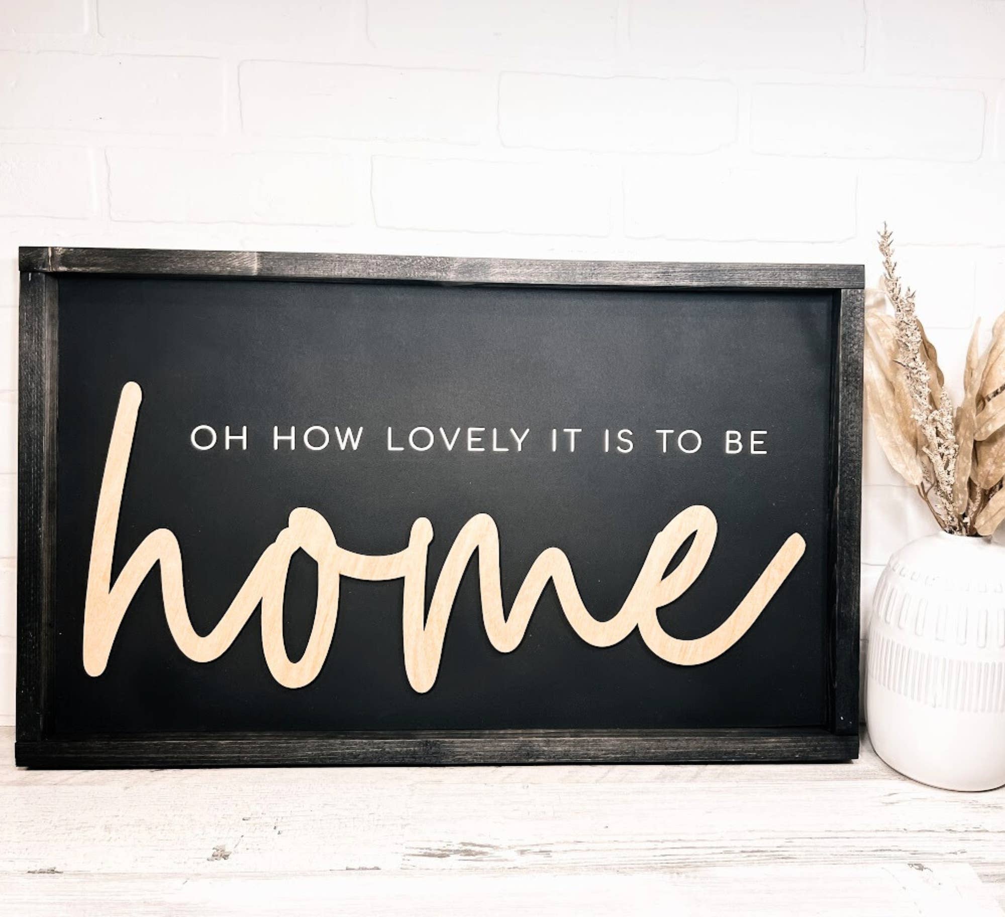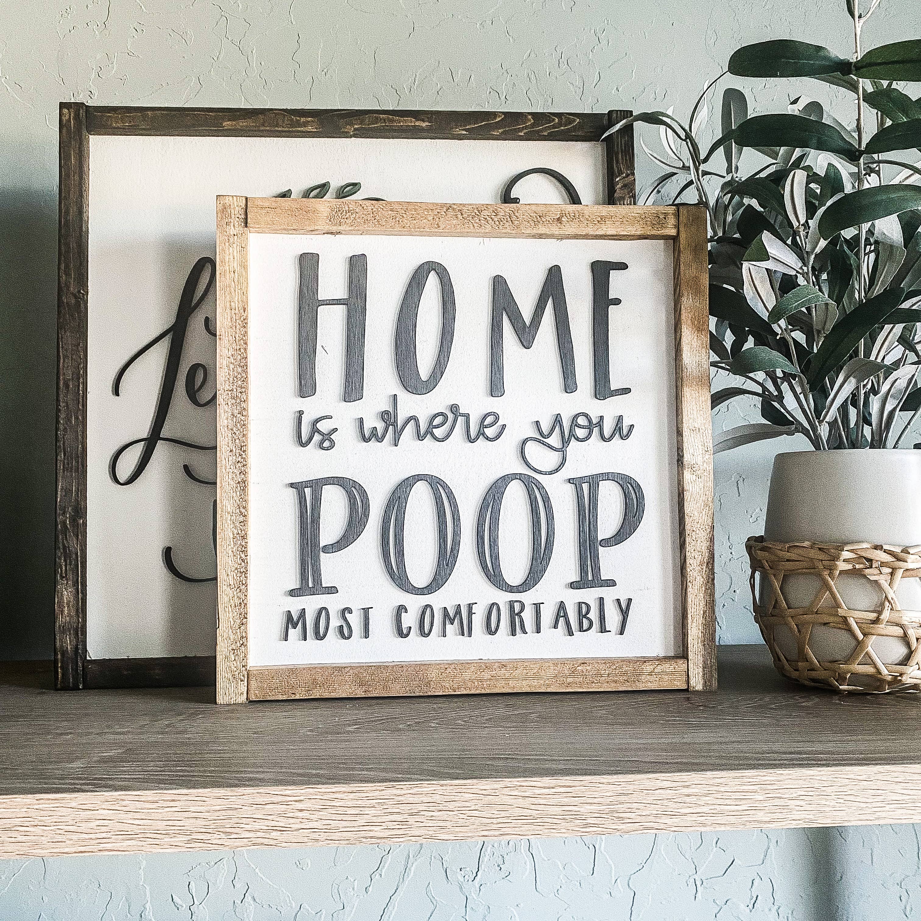 SIZE(approx.): 20”x6" BACKGROUND: White LETTERING: Black FRAME: Dark Walnut 🌲Each sign is hand painted, screen printed with ink, and/or laser crafted with 3D lettering. 🌲3/4" MDF used as the backer. 🌲Backs of signs are unfinished, and will have a Dakota + Pine Design Co. stamped logo 🌲Signs may vary slightly in size, but never more than 1 inch. 🌲All signs come sealed and ready to hang. If it is a framed sign, the frame creates an overhang for easy hanging.