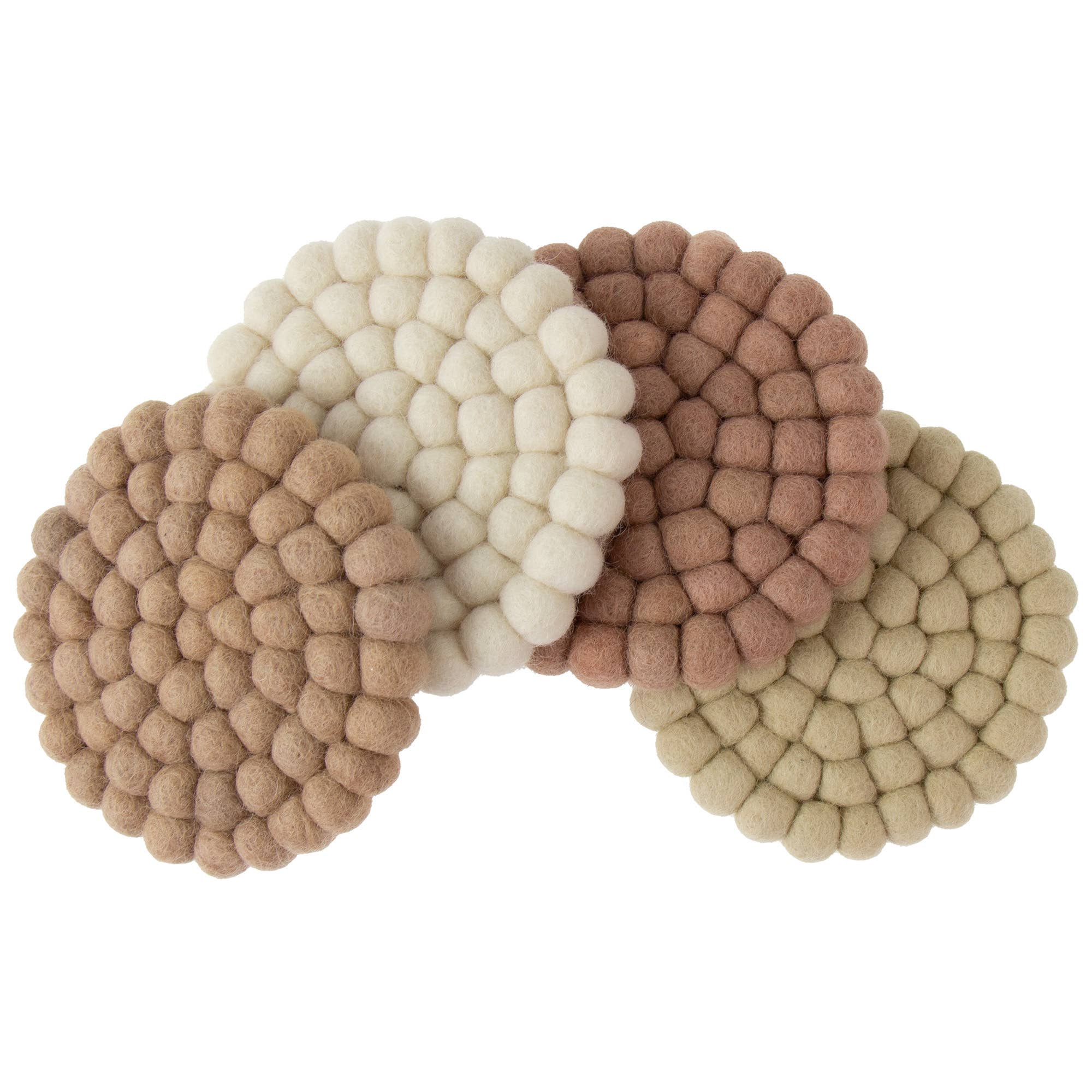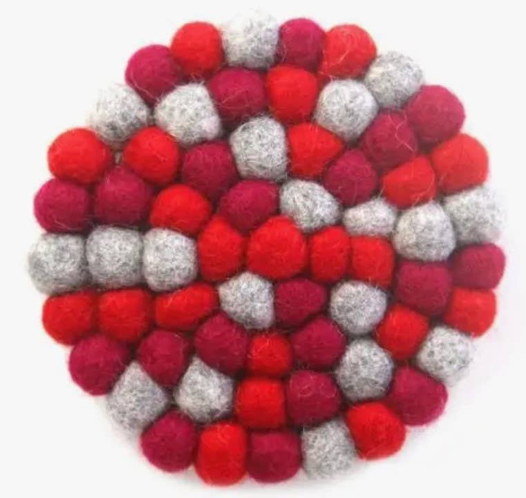 Cozy up your home with design, texture and color! Our artisan-made eco-friendly wool coasters protect your table and countertops from hot or cold beverages while looking beautiful, naturally. Crafted from fine New Zealand wool and azo-free dyes using age-old techniques. Handmade in Nepal by a Fair Trade women's cooperative. * Size: Each coaster is approx. 4" in diameter * Care: Spot clean as needed. Do not machine wash or dry. The Art of Felting: The first step to creating these beautiful felt pieces begins with gathering some of the world’s finest sheep’s wool from New Zealand. Making felted wool is an ages-old, time-consuming process of bonding fabric with fiber.Keywords: coaster, kitchen , home décor , gift