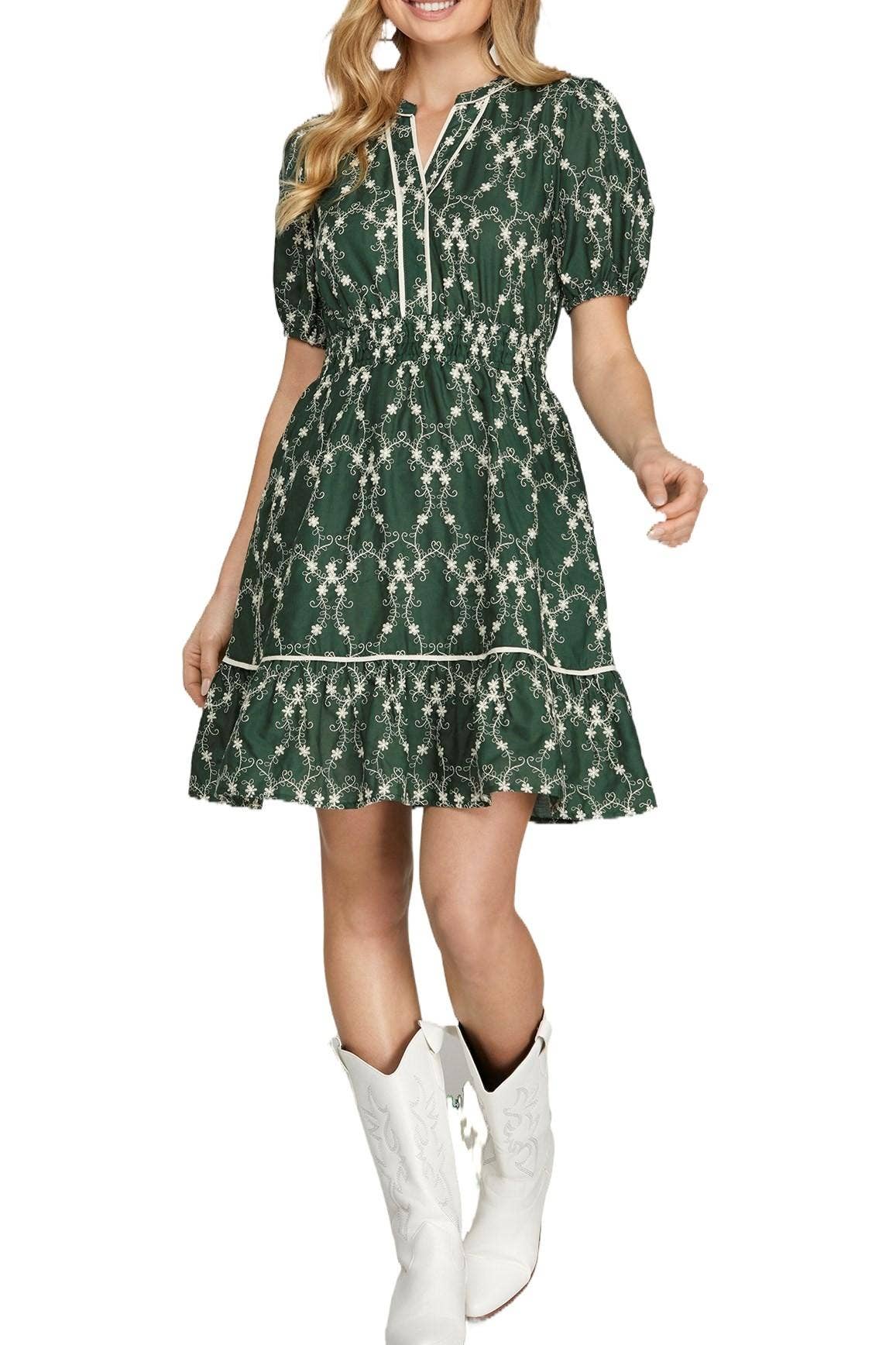 -Spring -Spring Dress -Knee Length -Floral Embroidery -Relaxed Fit