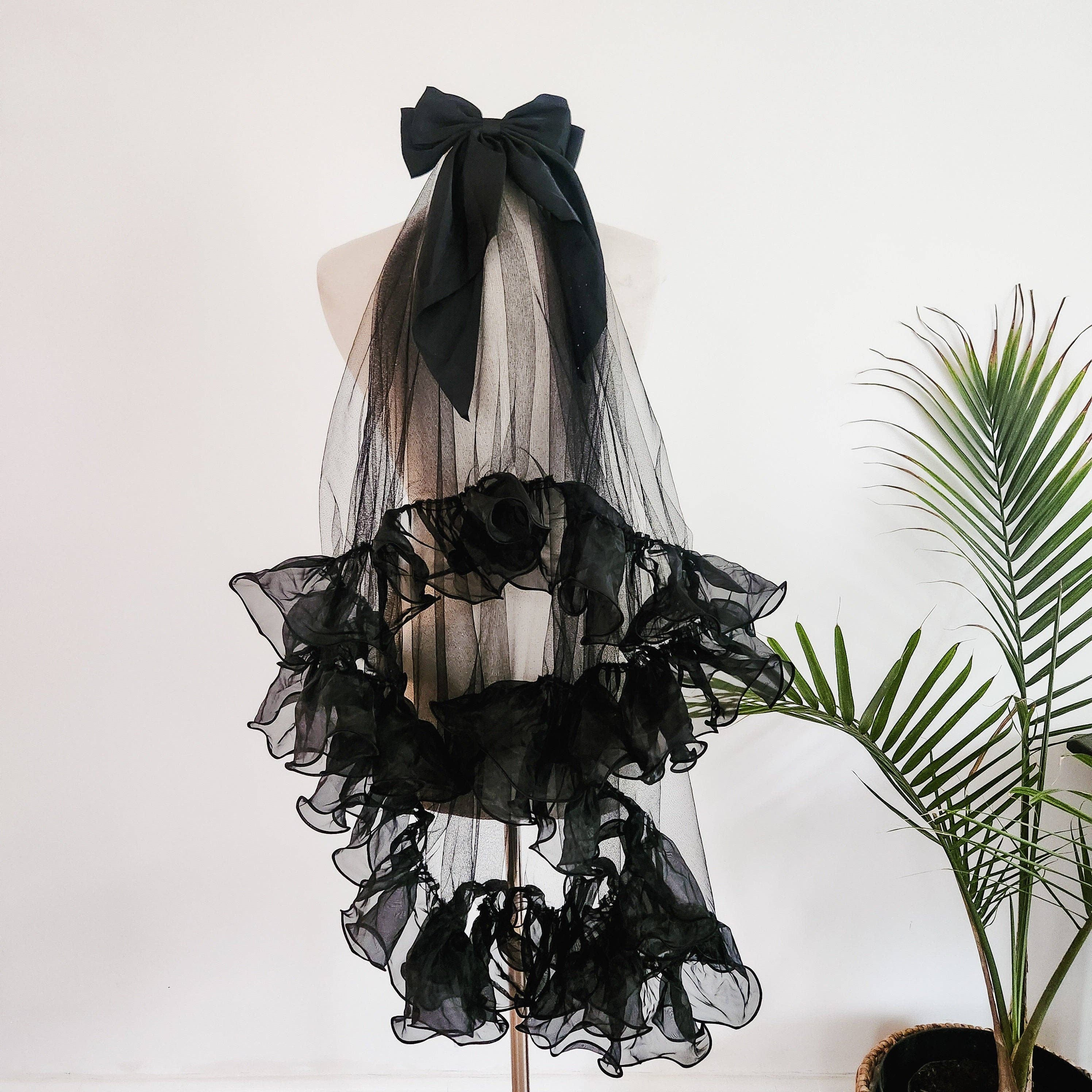 Bridal veil is crafted with soft tulle in a center gathered style to create two layers with a blusher. * Top layer (Blusher) measures 25 inches on the Elbow length, and 30 inches on the Fingertip length. * 2 layer made with 72 inch wide tulle. * Metal comb attached to fit securely and comfortably in the hair. * Style #401