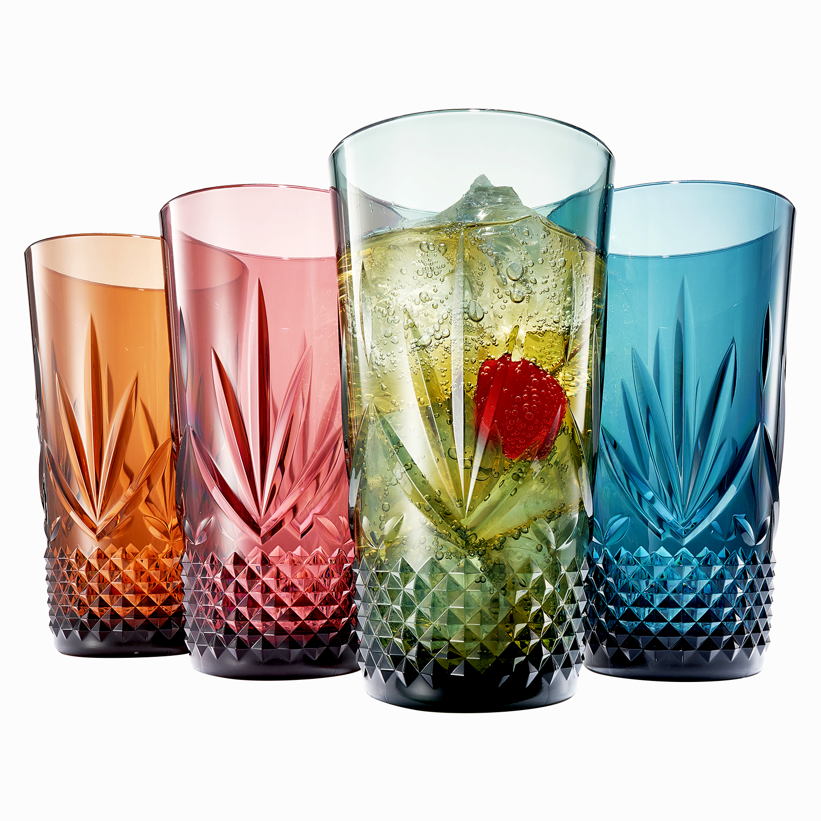 Acrylic Hobnail Glasses - Unbreakable Plastic 4 Color Set