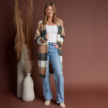 (R# 41) Warm and thick sweater color-blocked midi-length cardigan. * Pocket VISCOSE 50%, POLYESTER 28%, NYLON 22%