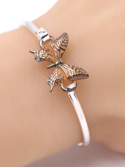 Hematite_Turquoise Swallowtail Butterfly Metal Bangle Bracelet __Please check the Diameter. It may be smaller in diameter than you expected. But our bangle size is standard__ FR2686 Hematite_Green Swallowtail Butterfly Casting Bangle FR2687 Hematite_Orange Swallowtail Butterfly Casting Bangle FR2689 Hematite_White Swallowtail Butterfly Casting Bangle Butterflies Have Long Been a Sign of Life, Metamorphosis, And Spiritual Change by The General Public. Whatever The Butterfly Represents to You May Serve as A Continual Reminder to Live Life To The Fullest Every Day Because You Wear It On Your Body Wherever You Go Diameter : 2 1/4" Point Accessory : 1 1/8 X 5/8" Material : Metal Brass, Top: Zinc, Epoxy Lead, Nickel & Cadmium Free