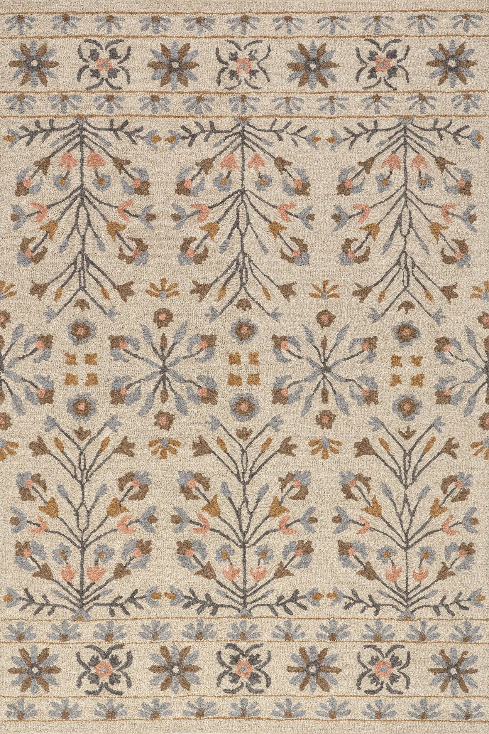 2’ X 4’ Blue And Beige Floral Hearth Rug