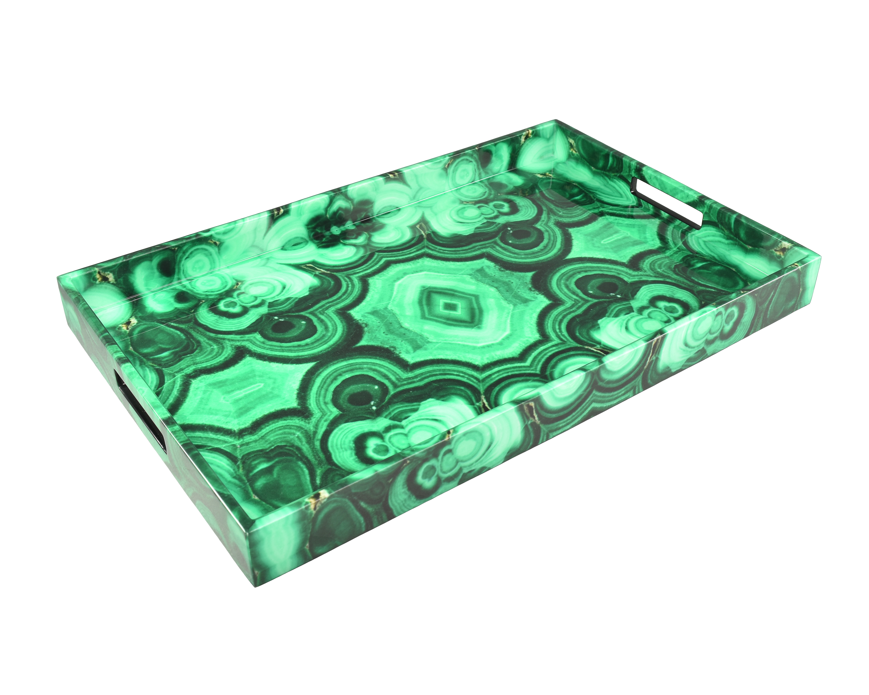 Long Vanity Tray: 7"x17"x1.5"H Malachite design with lacquer