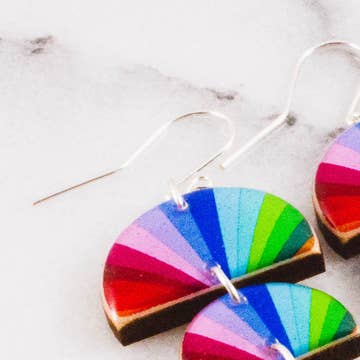 The RC Rainbow earrings are a Rainbow's Clay staple. The colors mimic our logo and represent our brand, because what is Rainbow's Clay without the rainbows? The RC Rainbows are assembled with gold-plated brass hardware. Our clay products are made with care from beginning to end. This means slight variations in pattern or color are possible, making each item unique and one-of-a-kind. Thank you for shopping small :)