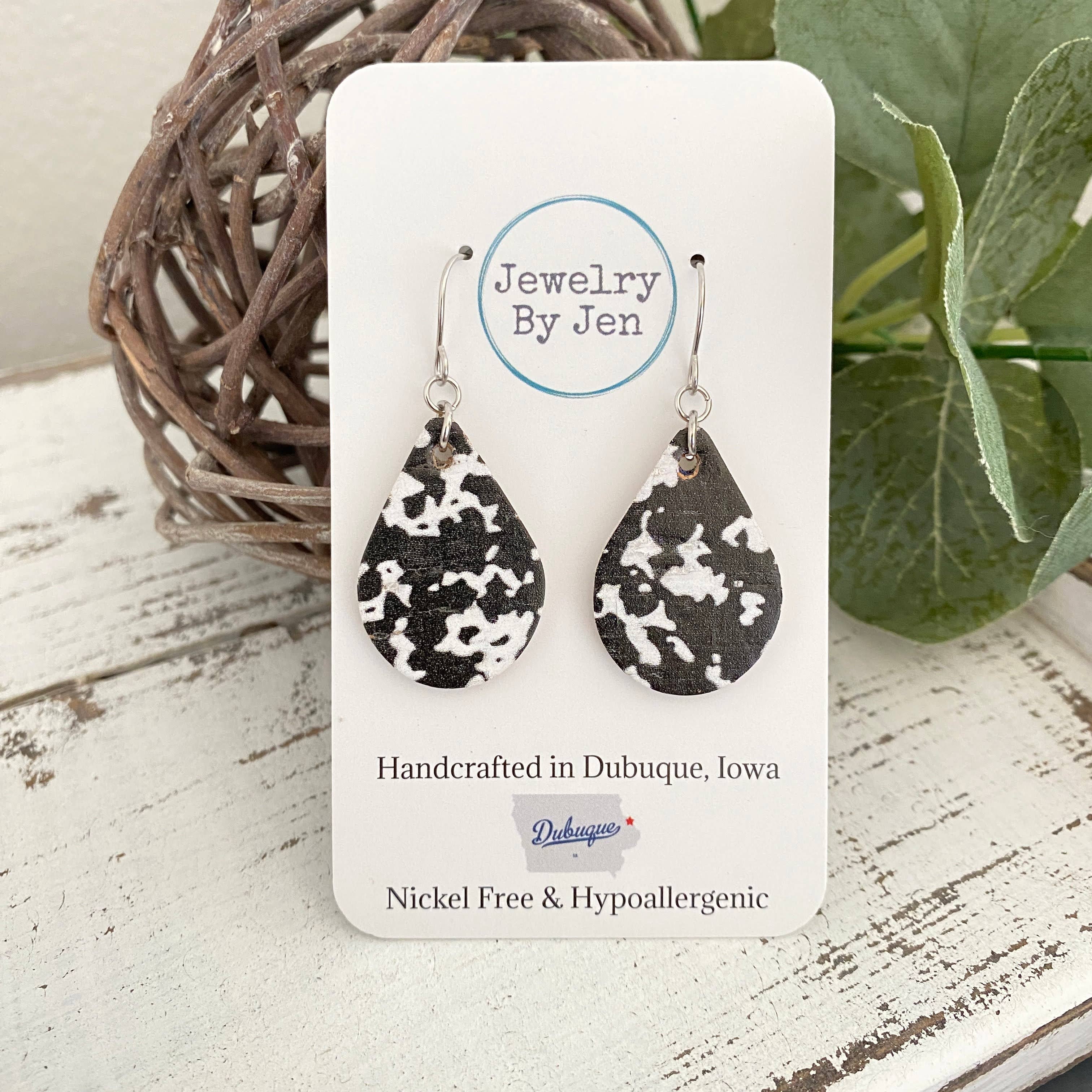 Our acrylic earrings all handmade by our small family business in Oshkosh, WI. They are precision laser-cut and then hand-assembled using quality materials. They’re beautifully presented on a custom earring card and packaged in a clear cellophane bag—ideal for gifting! ⋆ Our findings are all stainless steel, hypoallergenic nickel-free, and the ultra-lightweight acrylic ensures all-day comfort. ⋆ Please note that our patterned acrylic boards feature a unique, scattered pattern, so the design you receive may vary slightly from the photo. This means every pair is truly one-of-a-kind. ⋆ Size 1.5" Q U E S T I O N S ? ⋆ Send us a message! We do our best to respond ASAP