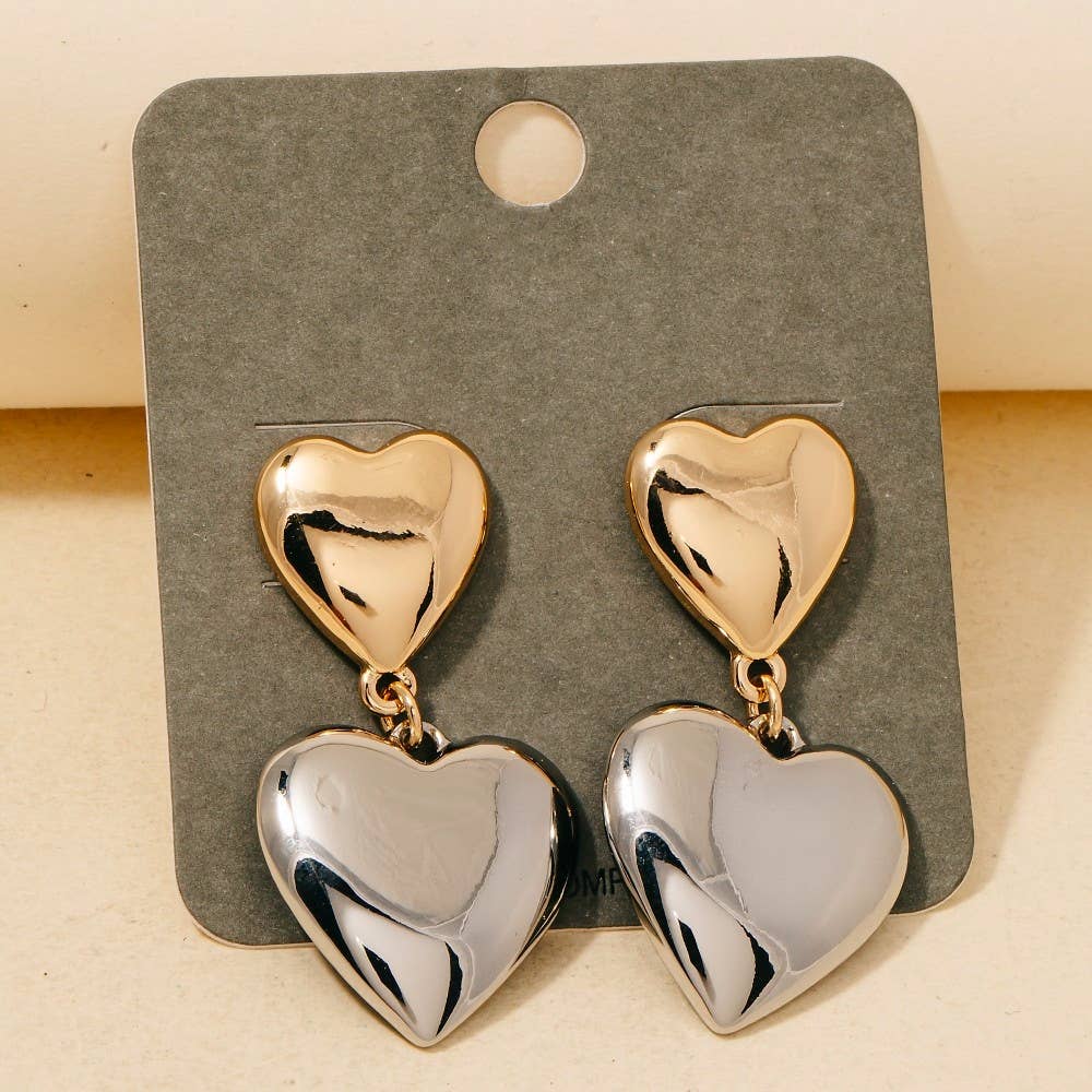 Here is a sets of gold bow rhinestone silver heart drop earrings. These elegant drop earrings can be worn up or down to match any outfit! This will look great with your shorts or puff hem dresses. DIMENSION length: 1" width: .75" earring back: Post metal finish: Gold Plating product: Lead & Nickel Compliant anti-tarnish: Double E-coating