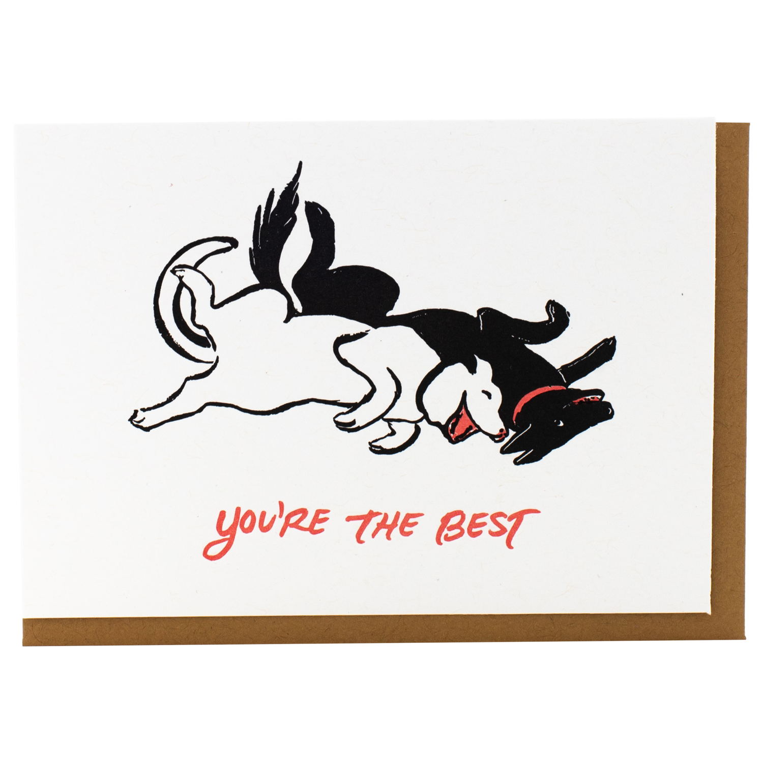 Letterpress greeting card created from an original illustration by guest artist, E.B. Goodale. Printed in Massachusetts & paired with a coordinating envelope. order minimum 6 front greeting you're the best inside greeting blank format 3.5 x 4.875 inches, folded (4Bar) printing letterpress printed in our Acton, MA studio paper FSC-certified cover made from 100% post-consumer waste envelope kraft origin USA guest artist illustrated exclusively for Smudge Ink by e.b.goodale item no. FTG2571 / FTG2571BOX