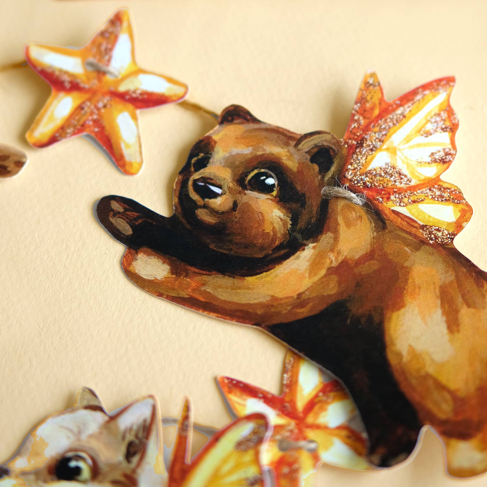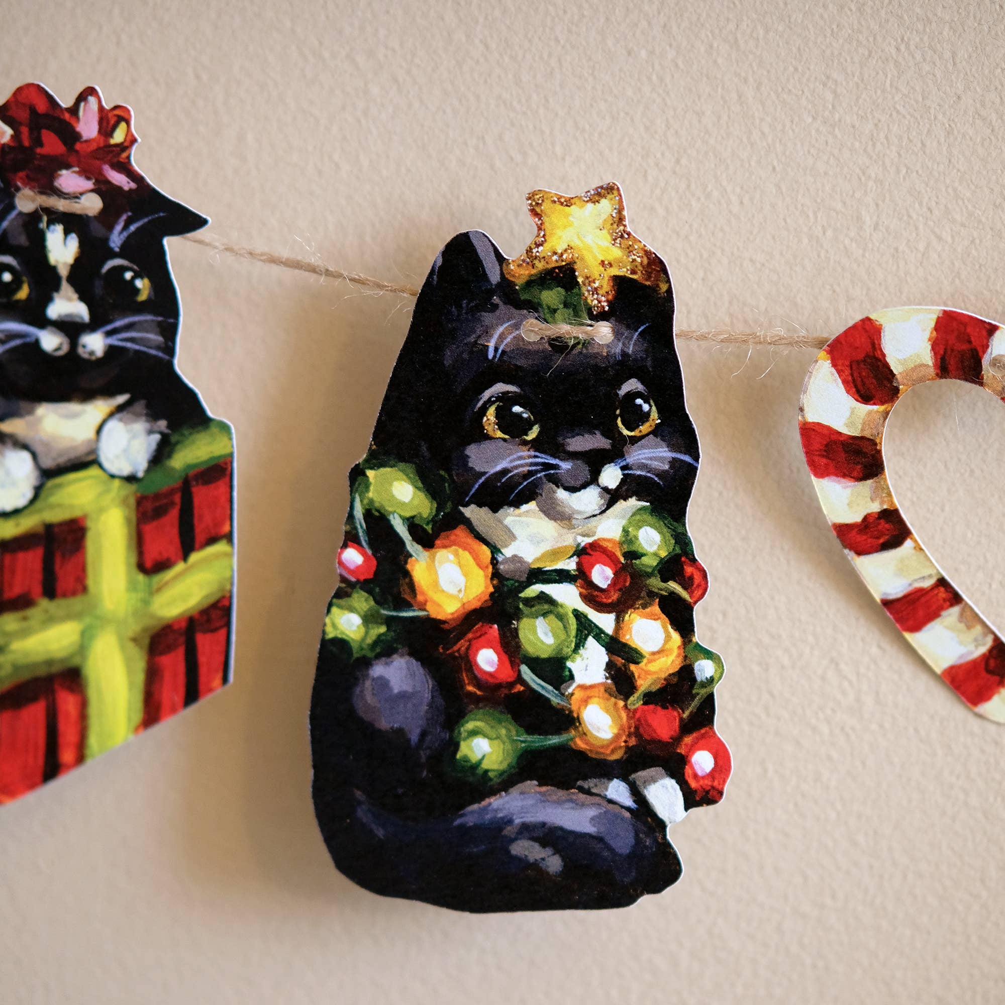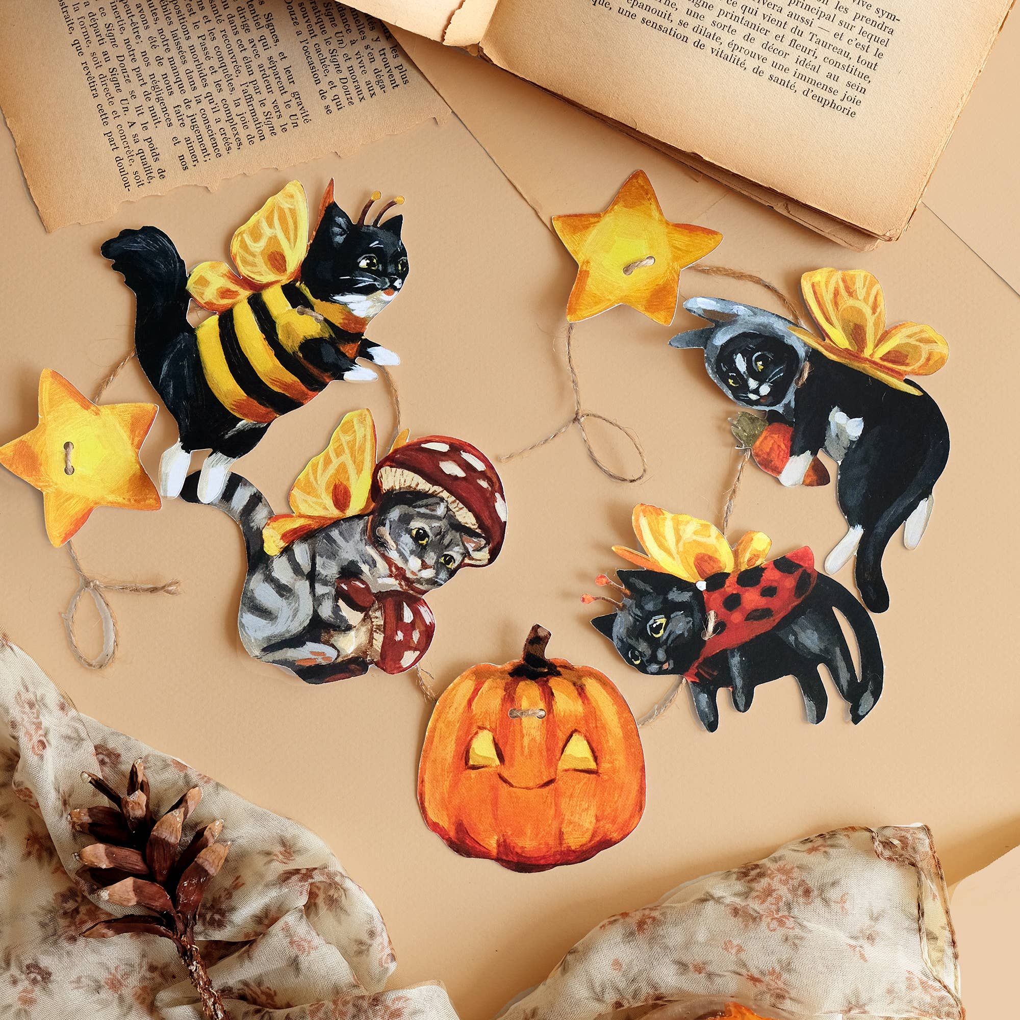 ♡ Each set comes with pre-cut pieces and twine, allowing customers to assemble the garland themselves. Each kit includes : - 7 pre-cut pieces (4 fairy cats, 1 pumpkin & 2 stars) - Print Size: Various sizes, but approx. 4'' x 4'' (10cm x 10cm) - Jute Twine Length: Approx. 35'' (90 cm) - Back blank - Printed on 100% recycled high-quality heavyweight 100lbs cardstock - Bilingual packaging with simple instructions - Packaged in a compostable plastic sleeve This whimsical DIY garland kit is a customer favorite for both Halloween party decor and Fall home decoration. Made with the planet in mind, it offers an eco-conscious option that appeals to families, craft lovers, nature enthusiasts, and gift buyers. Perfect for : Cute Halloween Wall Art, Nursery Decor, Kids Room Decor, Botanical Decor, Eco Conscious Gifts ♡ If you have questions, I'm always happy to help!