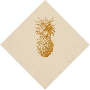 A must-have party essential, paper napkins are a fun and easy way to enhance your party décor and these metallic gold foil pineapple napkins are the perfect, inexpensive serviettes to do just that! Cute and stylish, they’re a nice, medium size that can be used as a disposable dinner napkin, cocktail napkins for your bar, or as a cool dessert napkins set out alongside cakes and other delicious sweets. Coming in a package of twenty, these charmingly cheap, gold and white pineapple shaped serviettes will add a little extra decorative flare to your tableware at a tropical beach themed bachelorette, engagement parties, bridal showers, and of course, your wedding reception! Whatever the special occasion, your guests are sure to love these unique, specialty napkins. 3.2" (L) x 6" (H) 3-ply tissue This item is sold in packages of 20