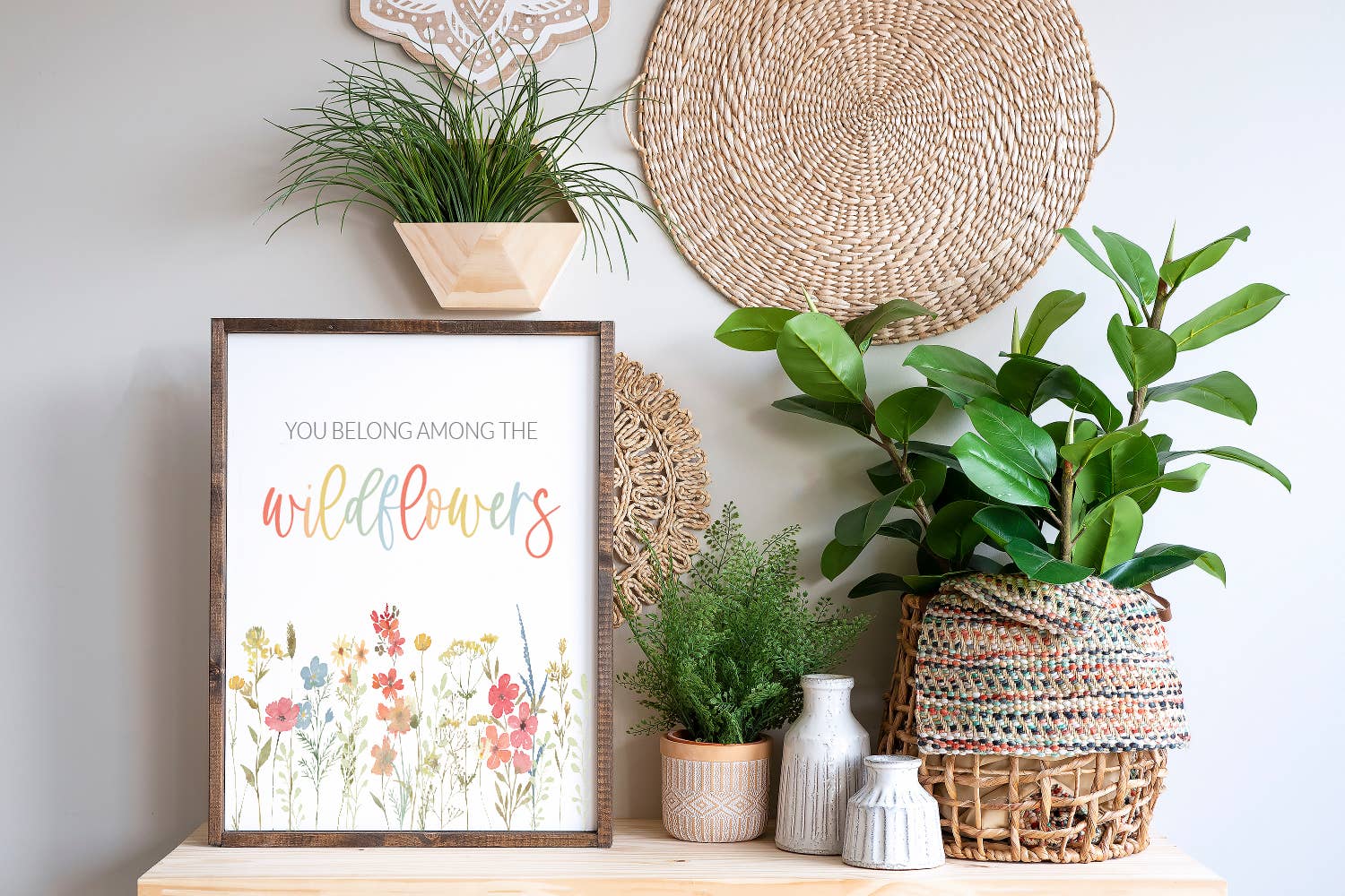 This charming art print features a delightful illustration of cute and friendly jungle animals with the greeting "Hello Little One." The colorful and whimsical design is sure to captivate the imagination and spark a sense of wonder in young minds. • Printed with high resolution archival giclee inks • Fine art cotton canvas mounted on wood • Solid hardwood frame in shown stain colors • Sustainable American oak or alder wood • Made in the USA in our Utah studio • MINI 6" tall x 6" wide x 1.25" deep w/ 1/4" thick frame • SMALL 11" tall x 11" wide x 1.25" deep w/ 1/4" thick frame • MEDIUM 15" tall x 15" wide x 1.5" deep w/ 3/4" thick frame • LARGE 20" tall x 20" wide x 1.5" deep w/ 3/4" thick frame • Signs may have +/-1" variations • All signs can stand on a shelf or table (Medium & Large can also hang on a wall) • Farmhouse style frames have small rustic imperfections that make them unique