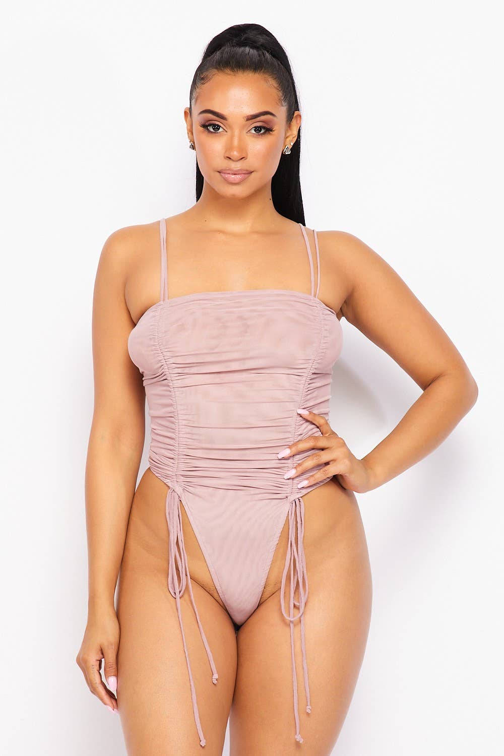 J7247 One Shoulder Cut Out Lined Bodysuit