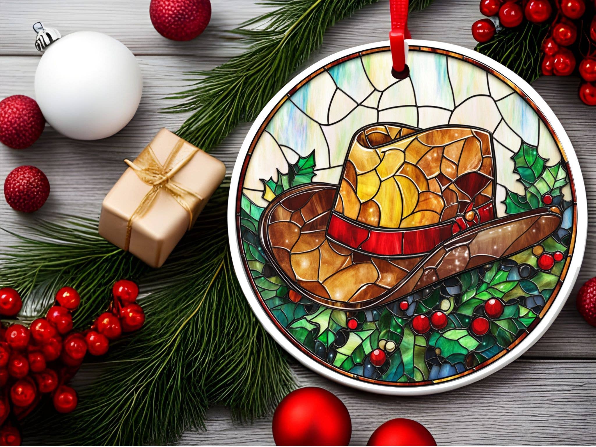 Ceramic Christmas tree ornaments are perfect for gifts or to add to your own Christmas tree. Details: Material: White gloss ceramic Ornament Size: 2.8" circle Weight: 2 oz. Packaging: Retail packaging - clear plastic bag with cardboard topper and hole for hanging display ** Image is printed on one side only. The back is white. ** All ornaments have a red ribbon for hanging. ** Color may vary from monitor to monitor compared to actual product ** Made in Canada with imported materials.