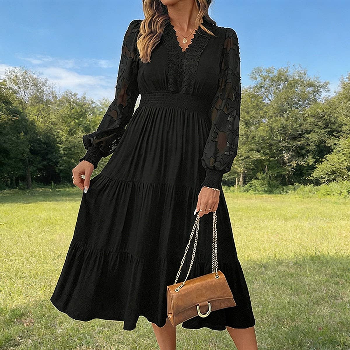 Date Party Spring and Autumn Elegant Lace Long Sleeve Dress