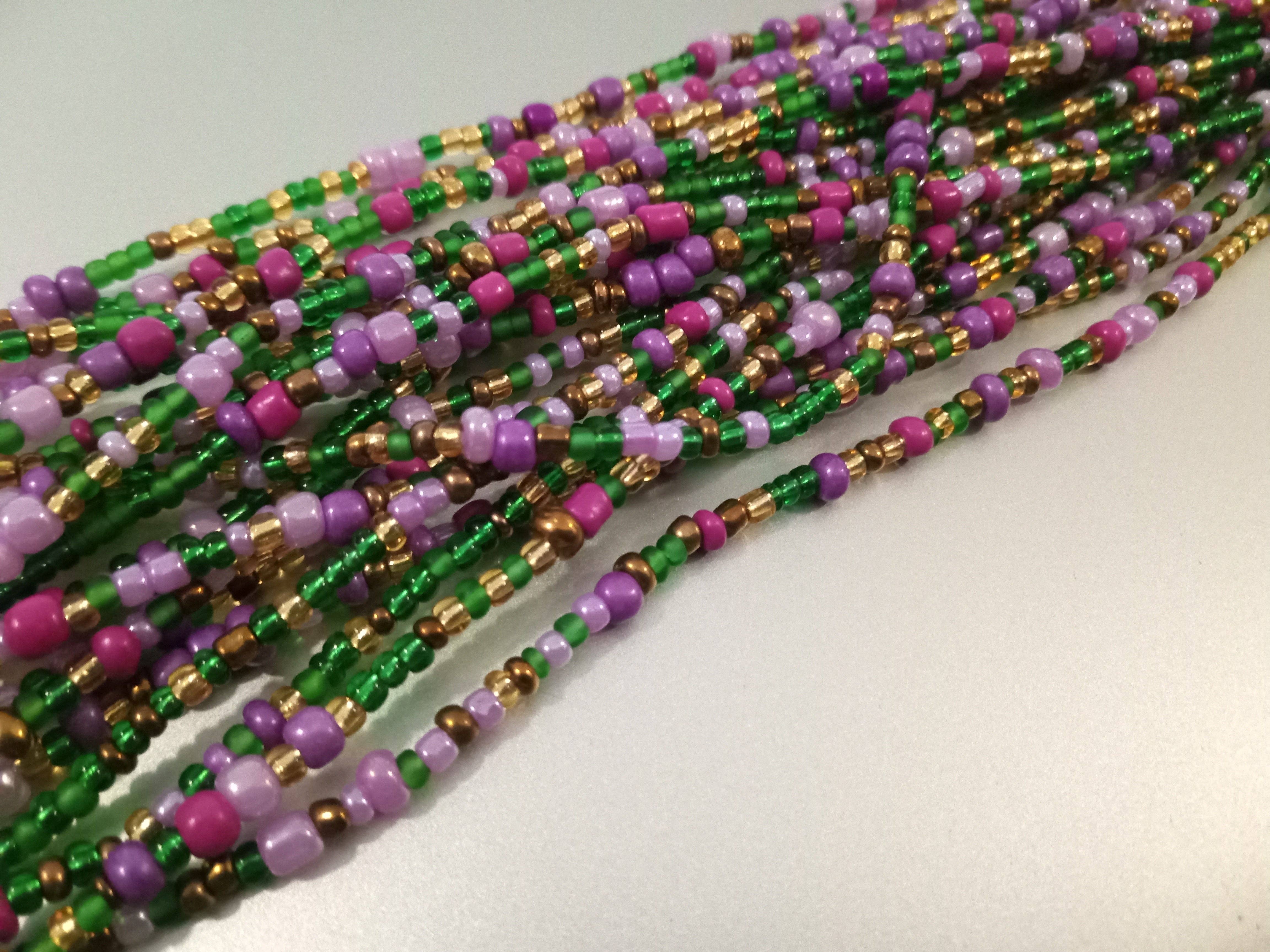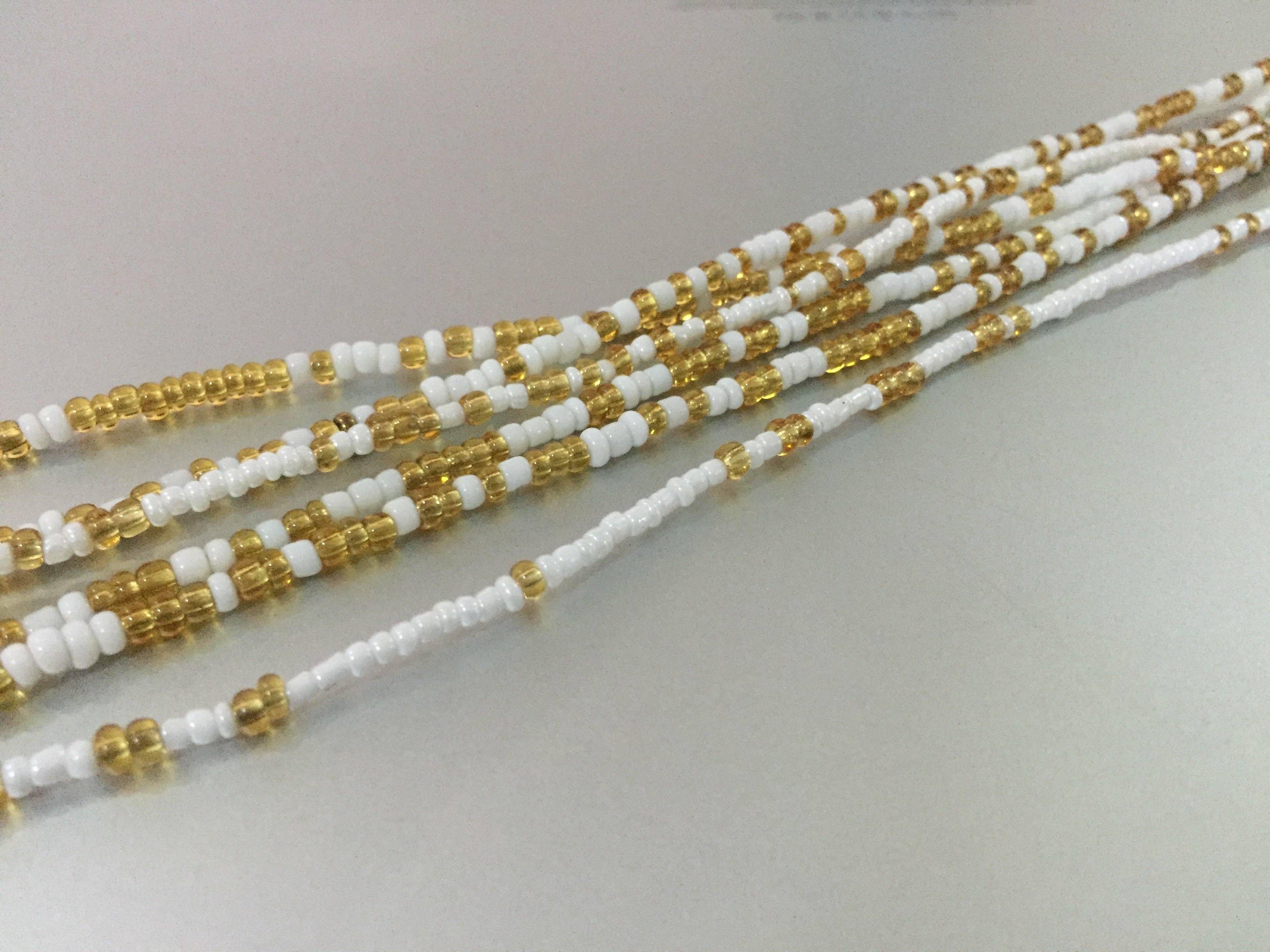 {{ WINTER WONDERLAND }} {{ Made in Ghana in the traditional Ghanaian fashion. }} {{ Listing is for ONE 47-inch strand of 2 millimeter waist beads }} {{ Contact us for longer strands, custom colors, larger or wholesale orders. }} * * * {{ HOW TO WEAR }} One at a time, wrap the strand around your waist and find the perfect fit for your body. Many women like the beads to drape the midsection above the hips while others, find an area around the bikini line a more appealing location. Make sure you're standing normally and feel comfortable (no sucking in!). Once the right position is found, adjust the individual beads so that they are flush with one another and no string is exposed around the strand, double check your positioning, remove excess beads, triple tie the string ensuring each knot lands on the other, and clip any extra string.