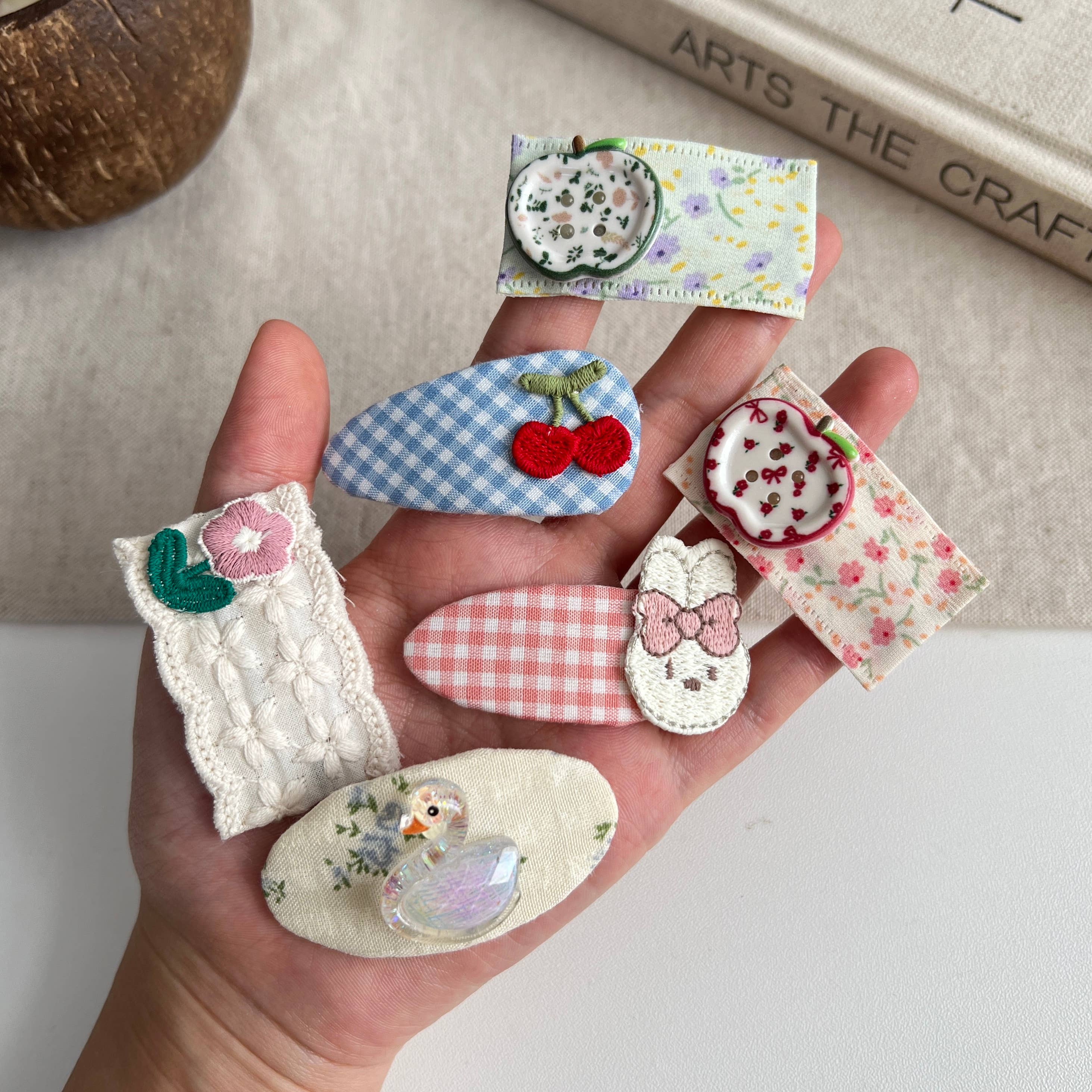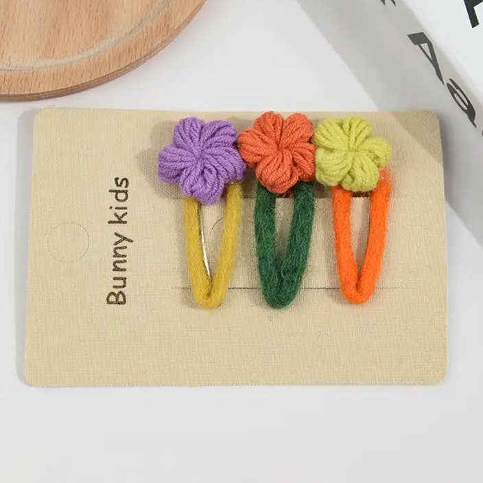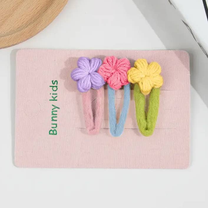 Wholesale Embroidered Floral Snap Hair Clips Set