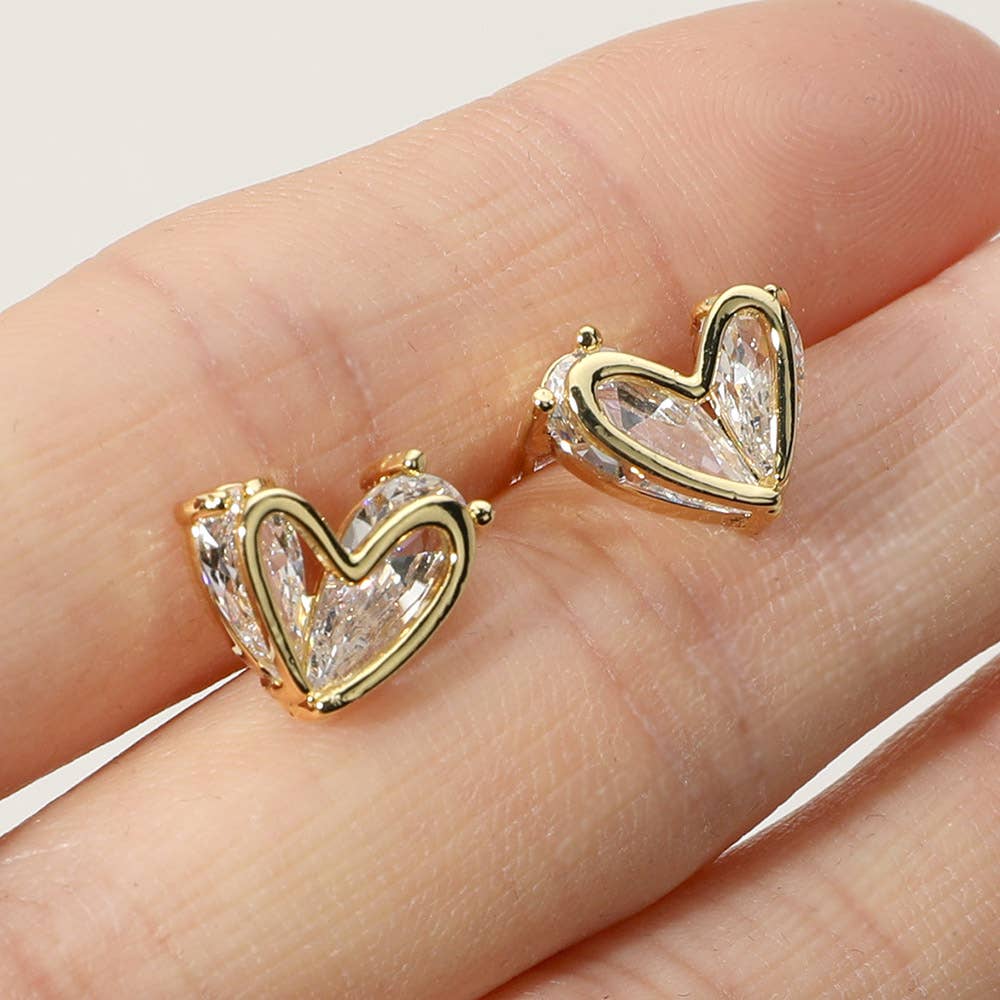 CZ Stone Heart Stud Earrings