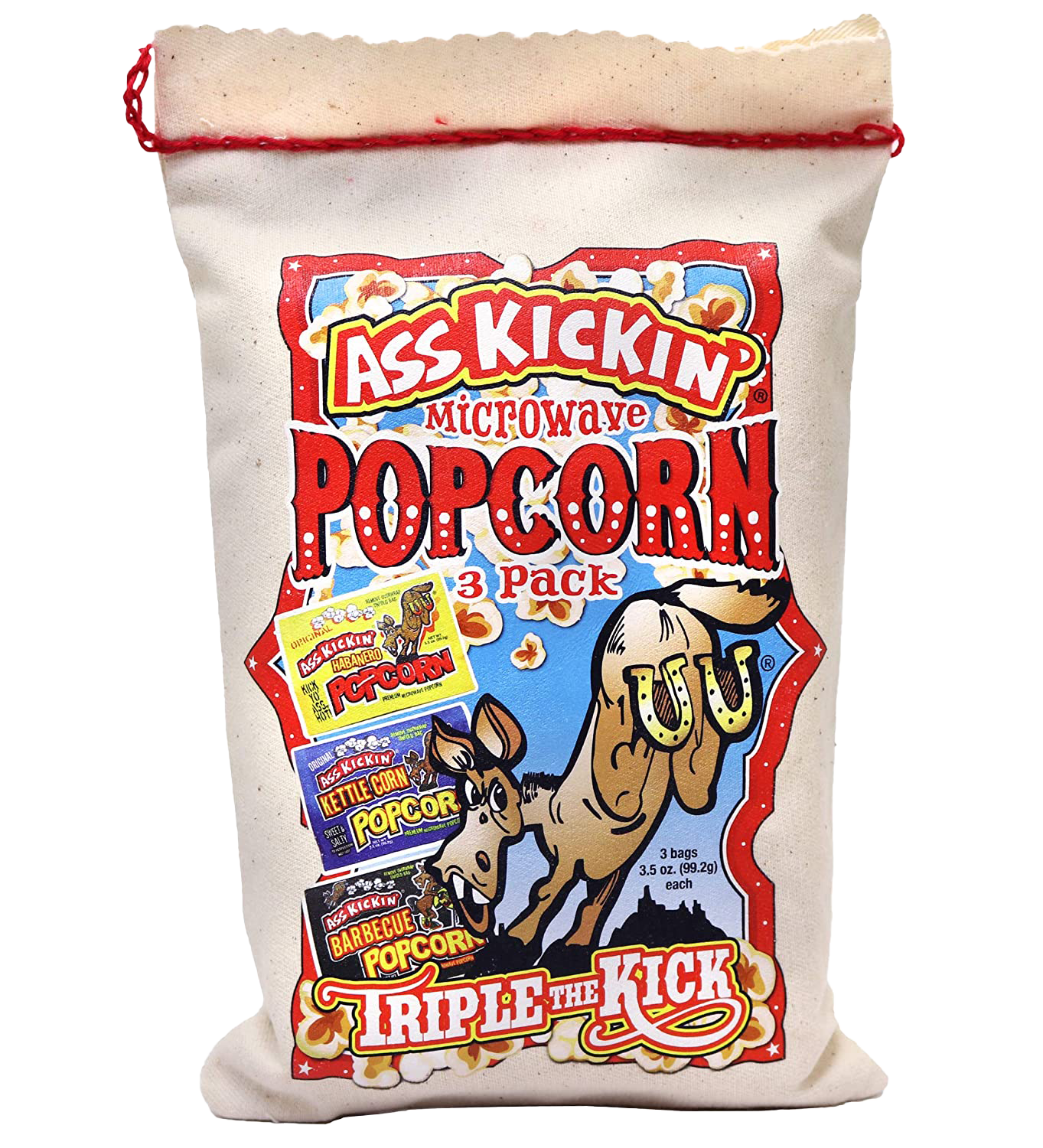 Ak847 | 12/cs | display case Ass Kickin’ sriracha microwave popcorn comes with 12 individually wrapped bags of microwavable popcorn. Fast and easy to make, simply microwave each pack for about 2-4 minutes and you’re ready to eat! AssKickin’ Sriracha Premium Microwave Popcorn has just the right amount of kick without burning your tongue!
