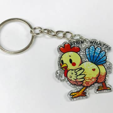 Screaming Chicken Rubber Squeaker Toy Key Chain -Dimensions: 6.75" * 3" * 2.5" -Display Box Dimensions: 7" * 6.75" * 5" -100% TPU -CA Prop 65 Advisory