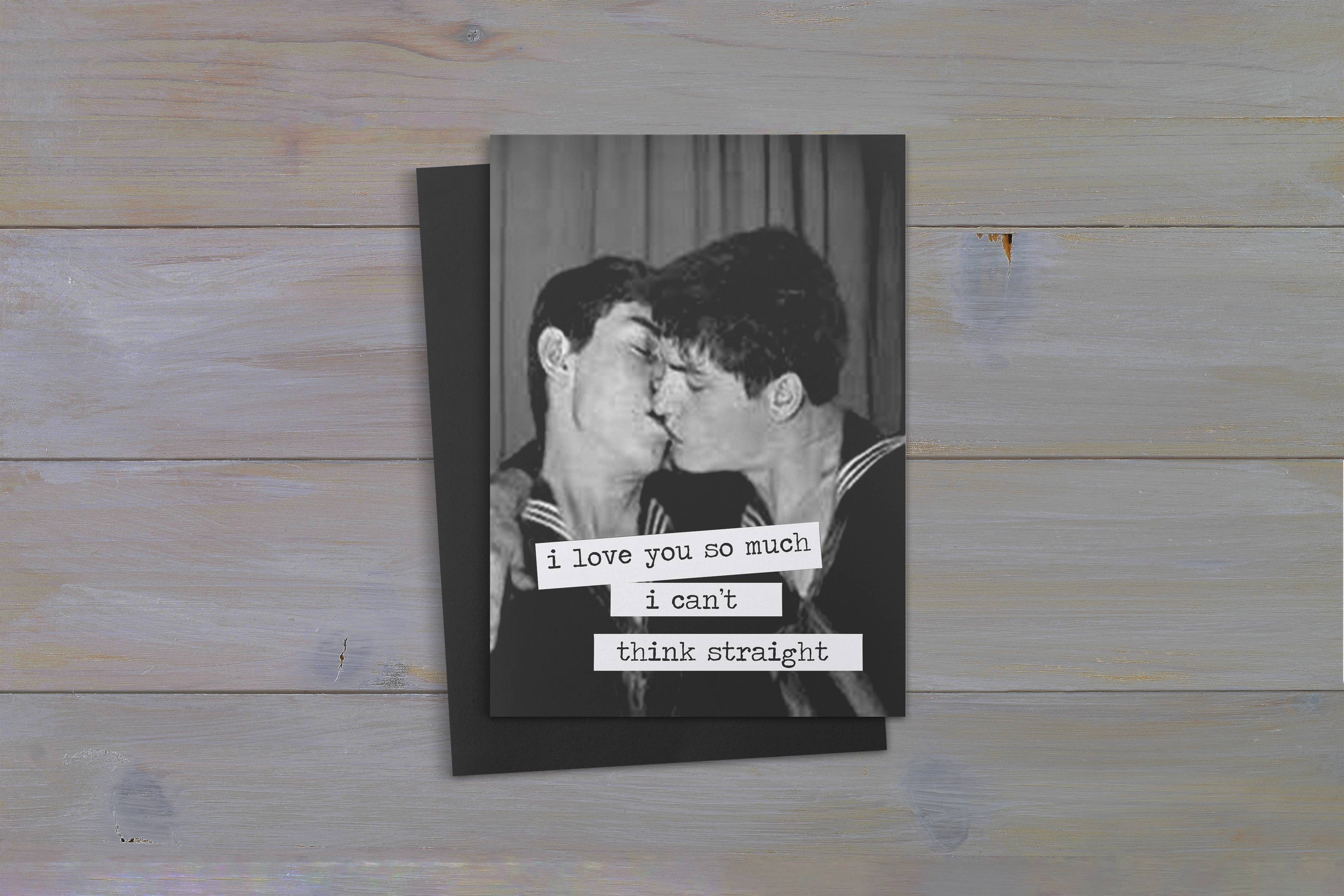 Front reads: "If God hates gays, how come we're so cute?" Retro, sassy, a little twisted, and filled with that cutting British wit we've come to love from Kiss Me Kwik. 4 x 6 inch cards with a semi-gloss finish, colorful envelopes, cello wrapped, blank inside for your message.