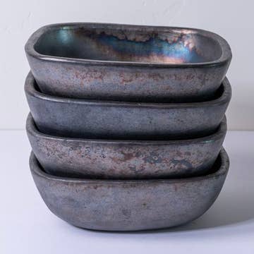 The soup bowl is the ultimate utility piece, ready-to-store fresh-chopped ingredients for tonight's dinner or dishing-out dessert. The Caspian Soup Bowl is a guaranteed standout with its genuine heirloom lace imprints in a calming dove grey and china blue glaze. Antique aesthetics and hand-sculpted detailing make it a conversation piece and a table setting standout in one beautiful package—great for gifting!