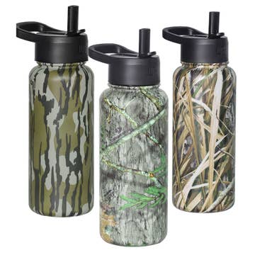 Elemental 20oz Iconic Series Stainless Steel Silicone-Strap Water Bottle with matte suede Soft Touch coating in new Black Camo. Sport lid comes with 2 straws each. Includes silicone strap handle for on-the-go use. Premium quality 20 oz (590 ml) insulated stainless steel Elemental bottles are carefully crafted, BPA-free and food safe. Keeps drinks at the perfect temperature longer.