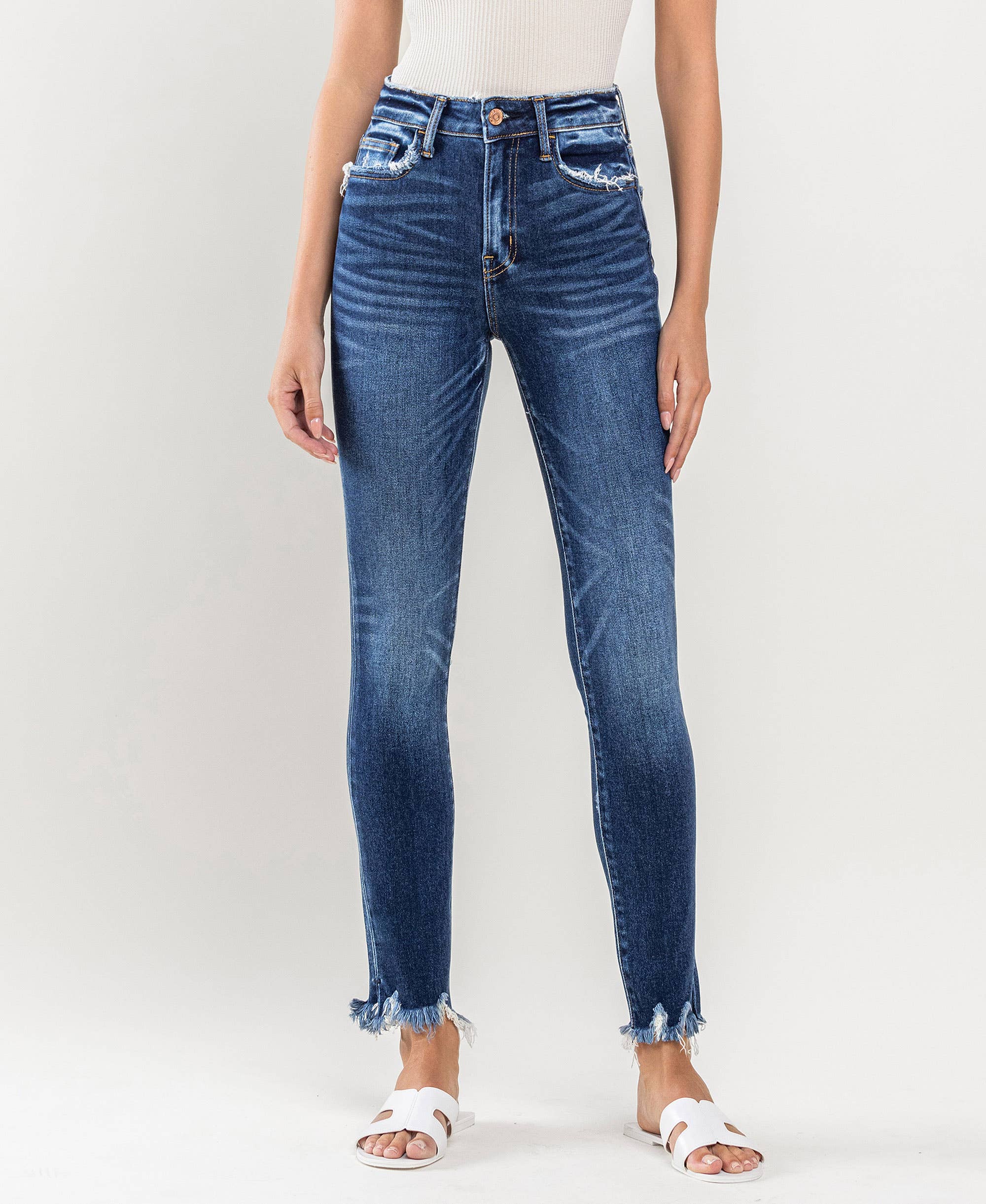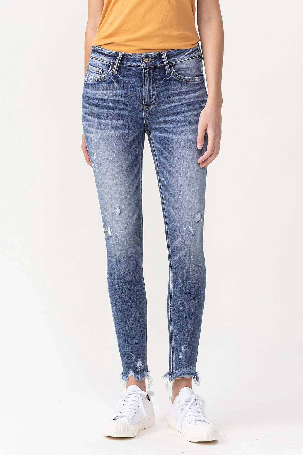***Image usage is allowed to the buyers who purchase from us via Faire only. Fabric Content: 93% COTTON 5% POLYESTER 2% SPANDEX Stretch Distressed denim Cuffed Skinny jeans Must-have denim Everyday denim Pair with any top, shirt or sweater