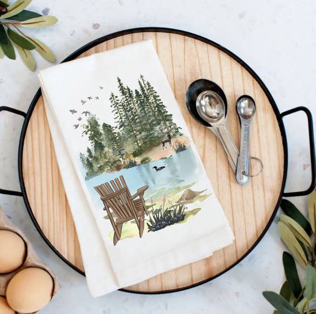 Wholesale Fall Mountain Lake Scene - Customizable Cotton Tea Towel