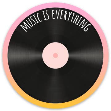 Music is Everything Vinyl Record Circle Sticker Show your love for music with this retro indie vinyl record sticker. This waterproof circle sticker is designed to last and features vibrant colors. Perfect for laptops, water bottles, and more. - Matte Sticker - Size: 3 x 3 inches - Material: Thick, durable vinyl protects your stickers from scratches, water, and sunlight - WATERPROOF STICKER SHOP MORE STICKERS: https://www.faire.com/product-based-collection/pbc_55g4sdyj33