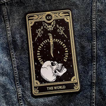 Roughly 12"x3" screen printed sew-on patch. This sew-on patch is perfect for nerds and goths alike. The artwork is created and printed by Zach Diaz.