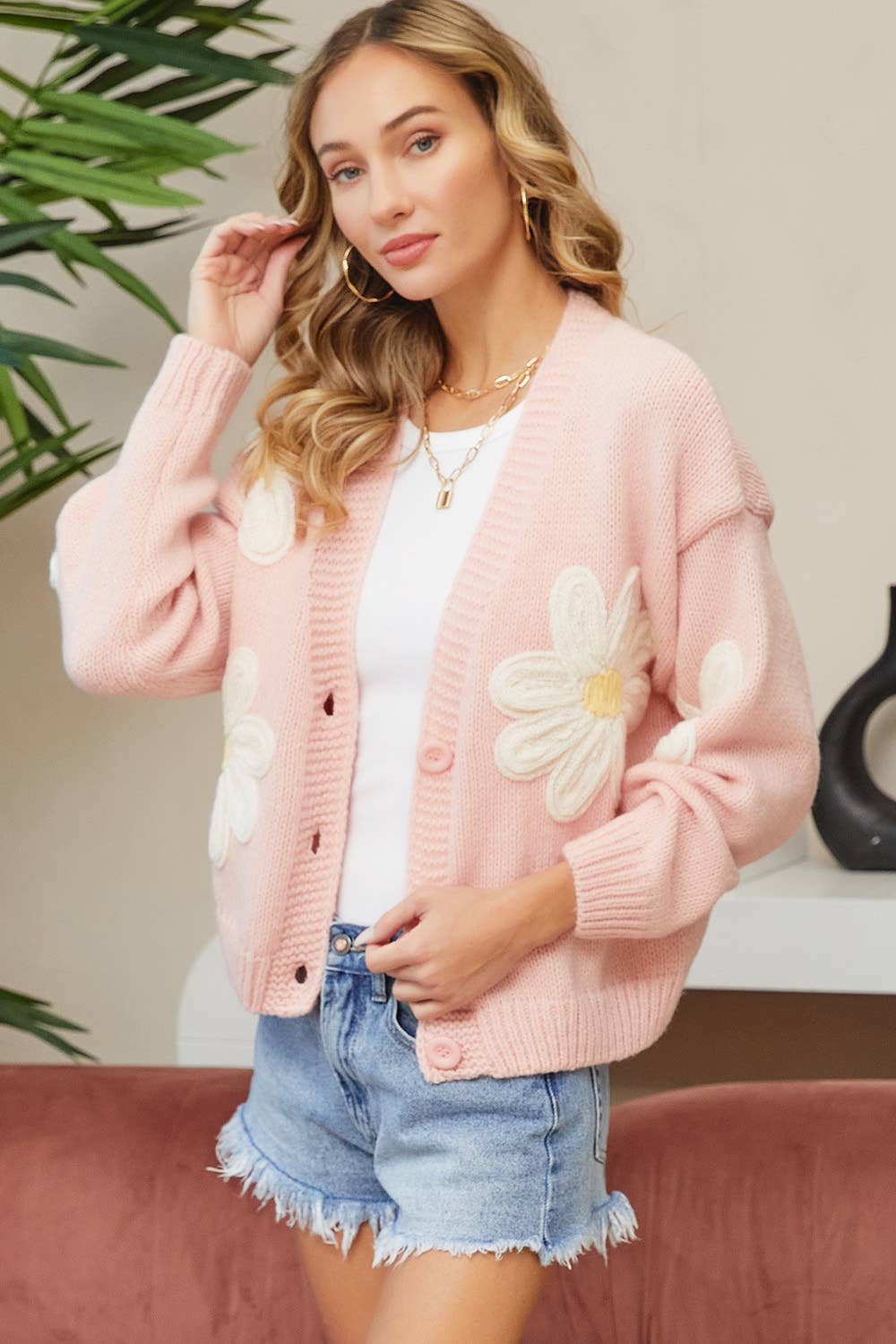 Embrace vintage charm with this knit cardigan featuring puff detailing and a floral motif design. Crafted from premium materials, this cozy layer adds a touch of nostalgia to any outfit. The puffed sleeves and intricate floral pattern create a feminine silhouette, while the knit fabric ensures lasting comfort. Versatile enough for casual outings or dressier occasions, this cardigan is a must-have for your wardrobe. Layer it over dresses, blouses, or your favorite jeans for a chic and timeless look. Available in a range of colors to complement your personal style. Size up for an oversized fit or stay true to size for a more fitted appearance. Elevate your style with this vintage-inspired knit cardigan. STYLE: LCS0432