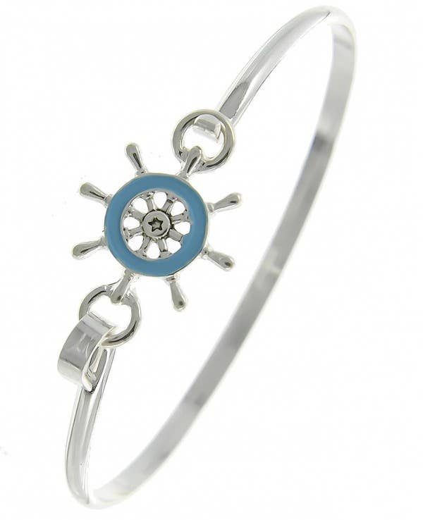 Each bangle is single but gives the illusion of three. Exclusive to us, this bangle also features a 100% American pewter charm and is expandable from 7 inches-8 inches making it one size fits most.