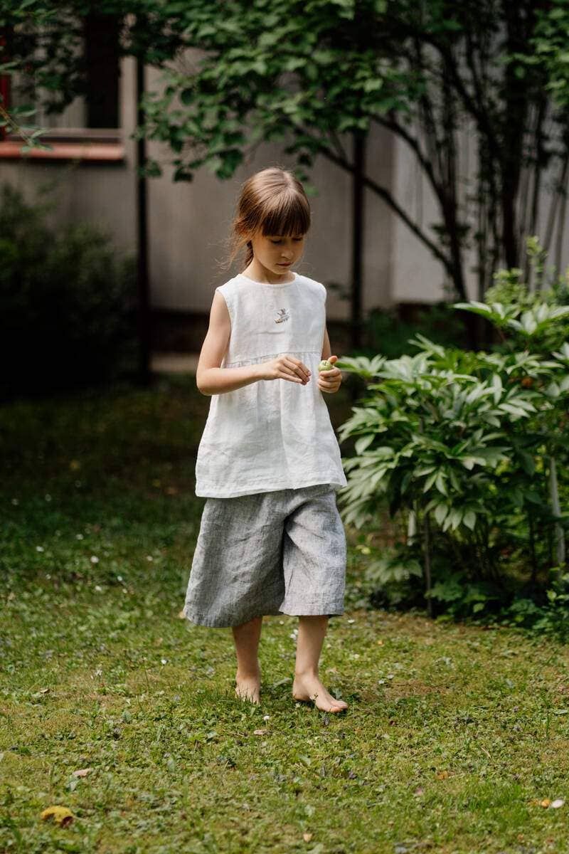 IMPORTANT - This item can be embroidered by hand. The embroidery is OPTIONAL. To have this item embroidered please select "Customize this item for US$0.00/unit" under size and color selectors and buy the embroidery separately in our HANDMADE EMBROIDERIES collection. Elastic waist Soft elastics around the legs Double layered Washed and soft medium weight organic linen (160 g/m²)
