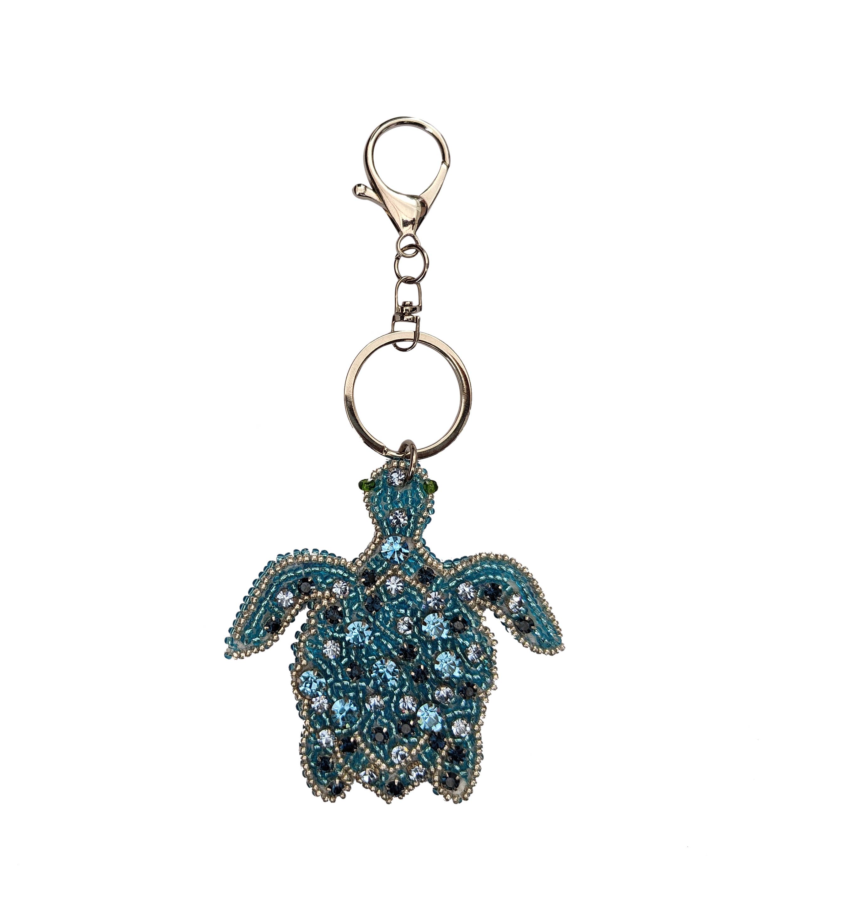 Aqua79 Blue Sea Turtle Keychain - Gold 3D Sparkling Charm Rhinestones Fashionable Stylish Metal Alloy Durable Key Ring Crystal Jewelry Accessory with Clasp for Key chain, Bag, Purse, Backpack, Handbag