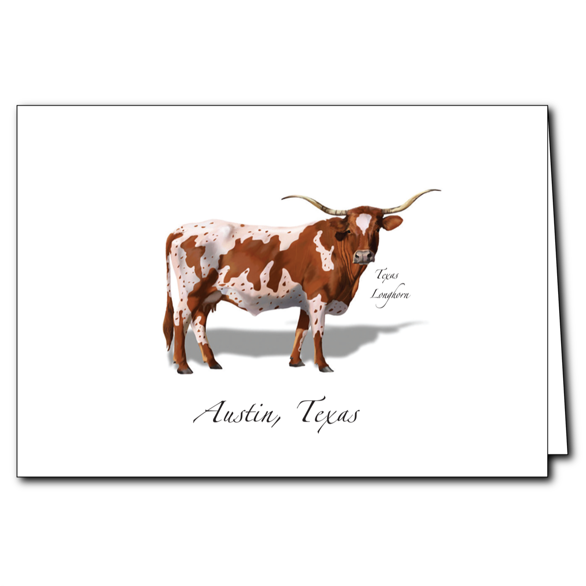 Our 5x7" folded card features Lee's art. Printed in our NC studio. Full color art on matte card stock. Blank inside. White envelope. Card and envelope are packed in a cello sleeve. If you prefer no cello sleeve please let us know.